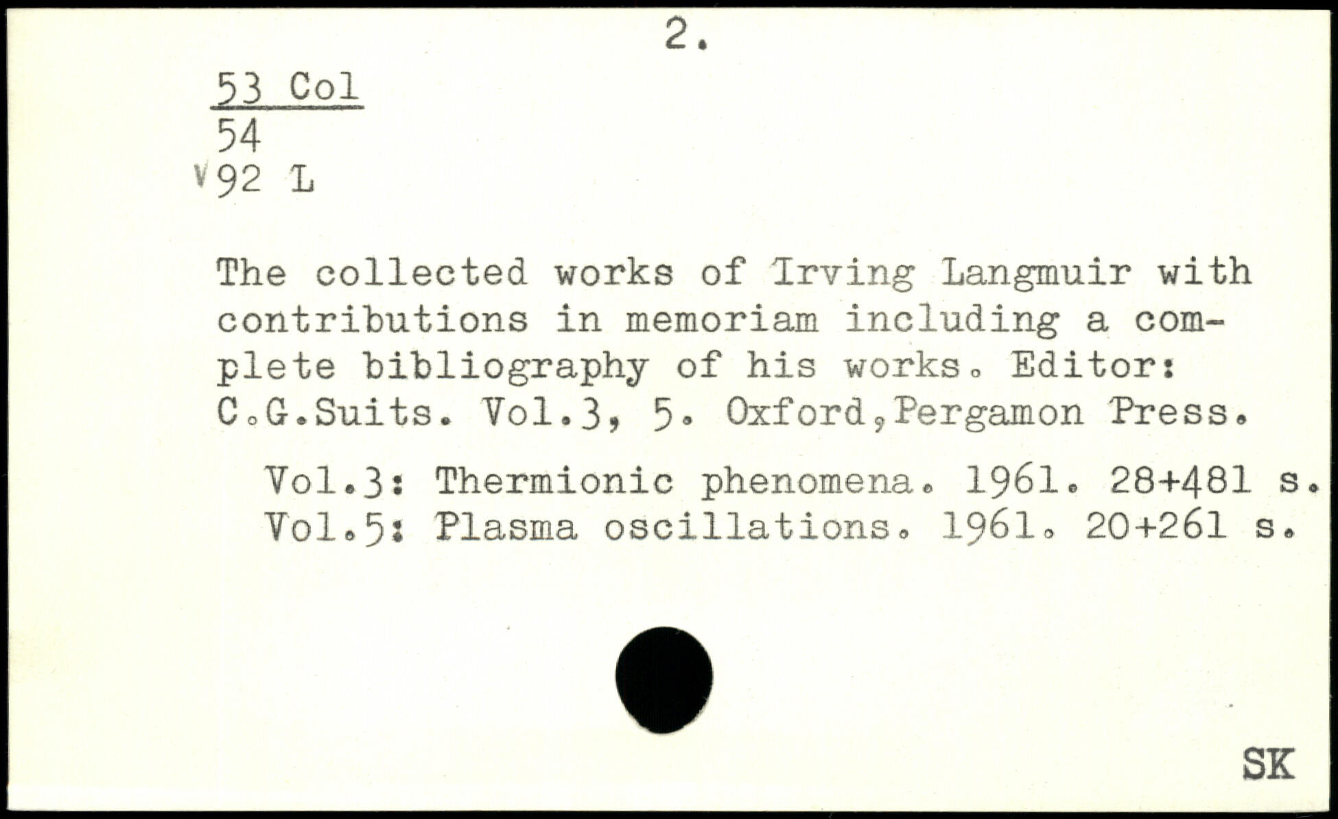 The collected works of Irving Langmuir with contributions in memoriam including a complete bibliography of his works, Editors CoG.Suits.
