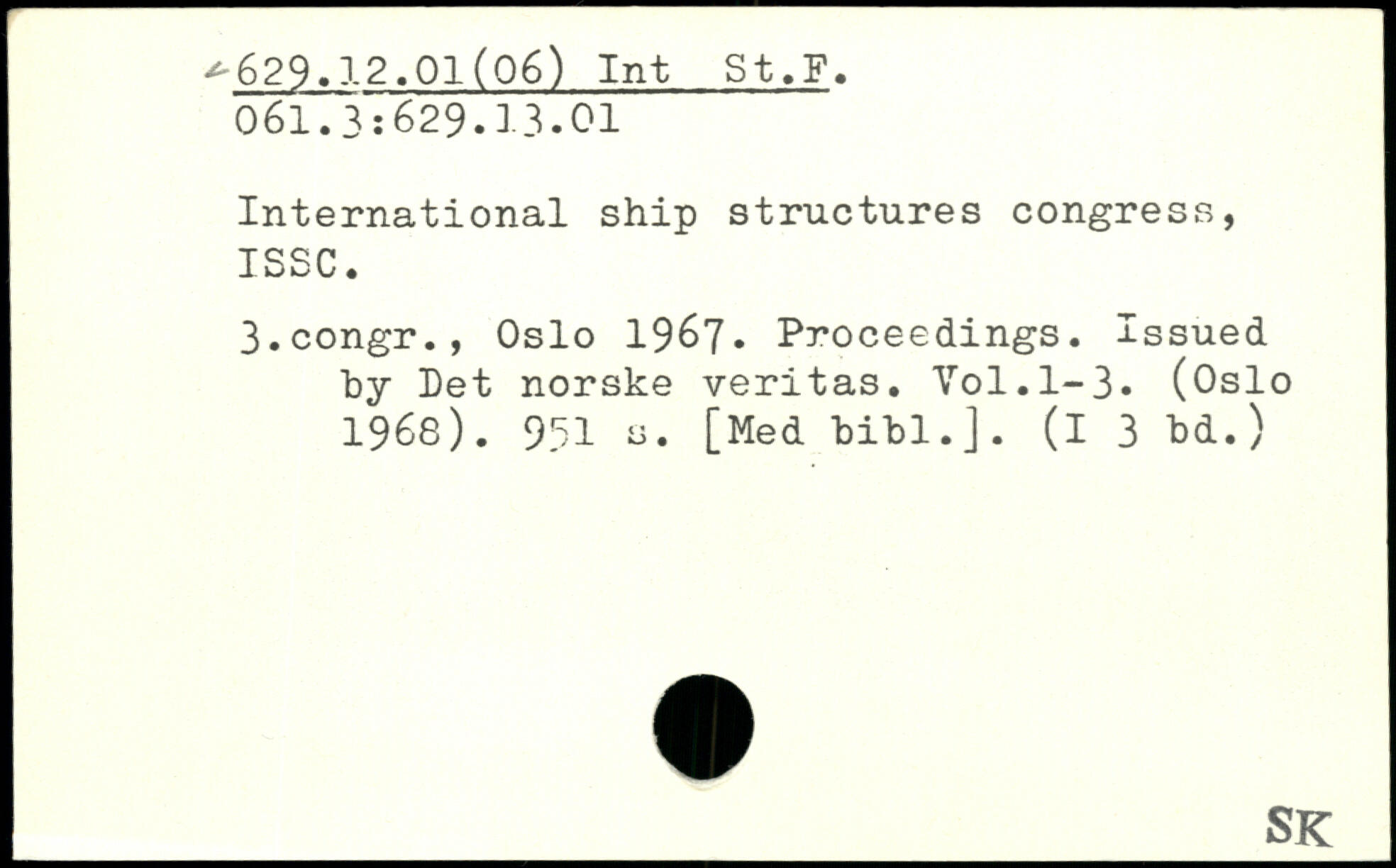 International ship structures congress, ISSC. 3.congr., Oslo 1967. Proceedings. Issued by Pet norske veritas.
