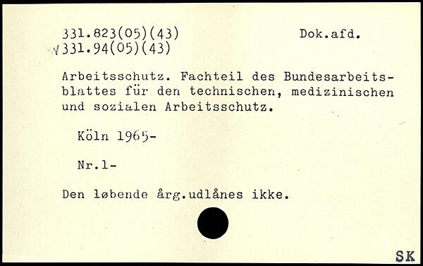 Arbeitsschutz. Fachteil des Bundesarbeitsblattes für den technischen, medizinischen und sozialen Arbeitsschutz.