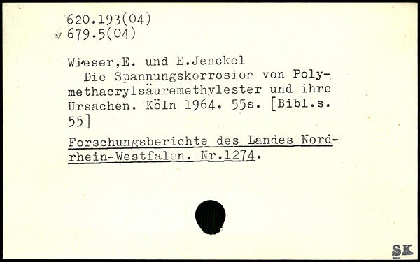 Wi/eser,E. und E.Jenckel Die Spannungskorrosion von Poly-methacrylsauremethylester und ihre Ursachen.