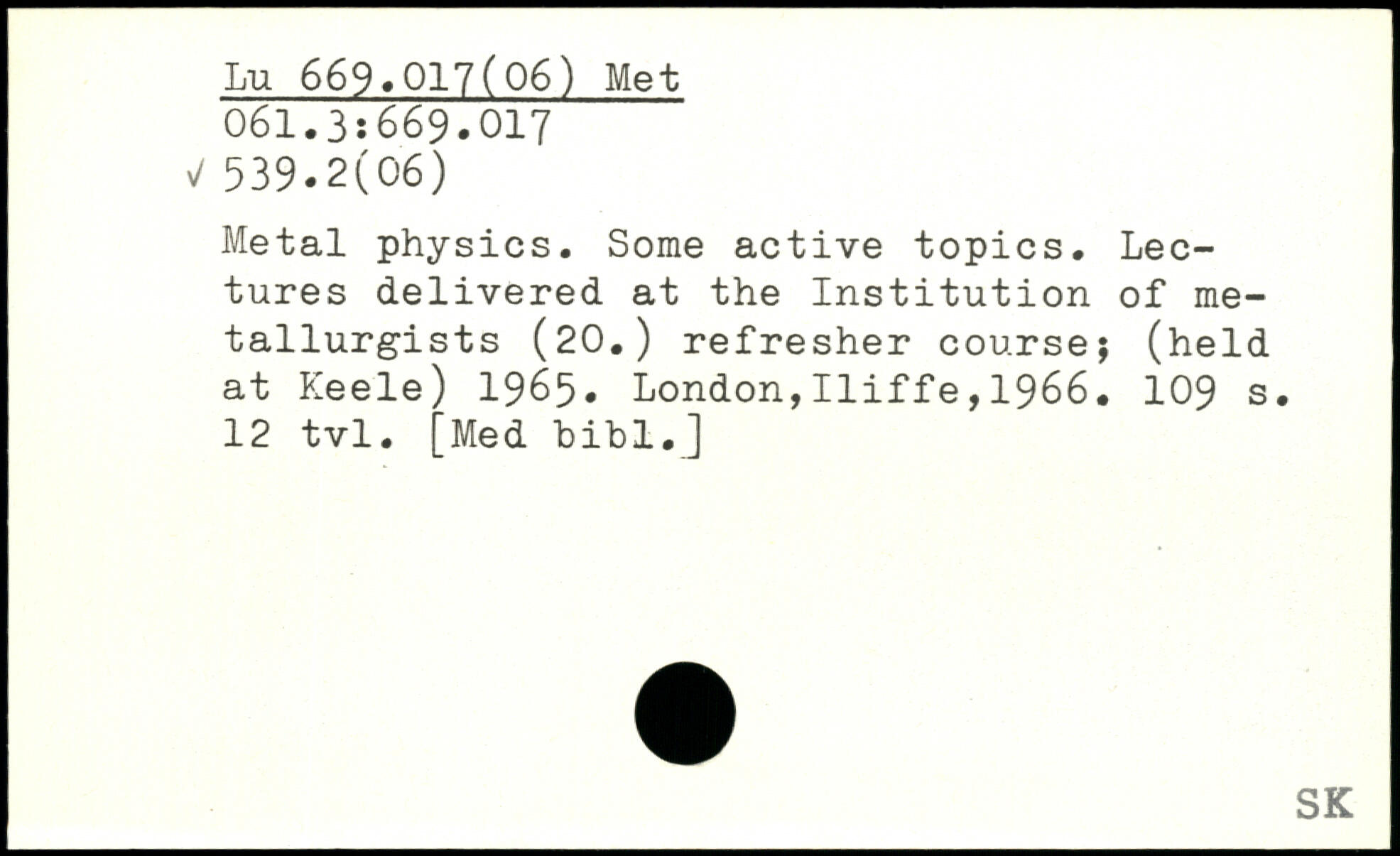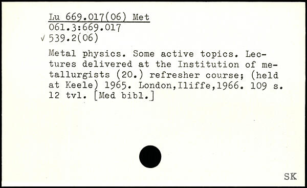 Metal physics. Some active topics. Lectures delivered at the Institution of metallurgists (20.) refresher course; (held at Keele) 1965.