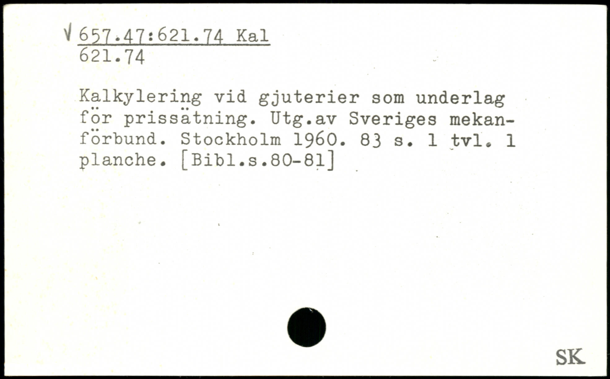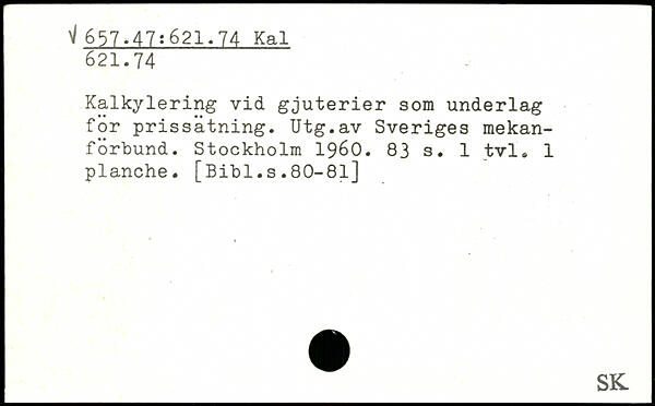 Kalkylering vid gjuterier som underlag for prissatning. Utg.av Sveriges mekan-förbund.