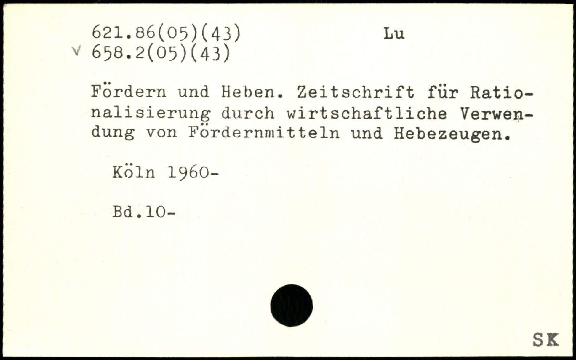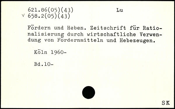 Fördern und Heben. Zeitschrift für Rationalisierung durch wirtschaftliche Verwendung von Fordernmitteln und Hebezeugen.