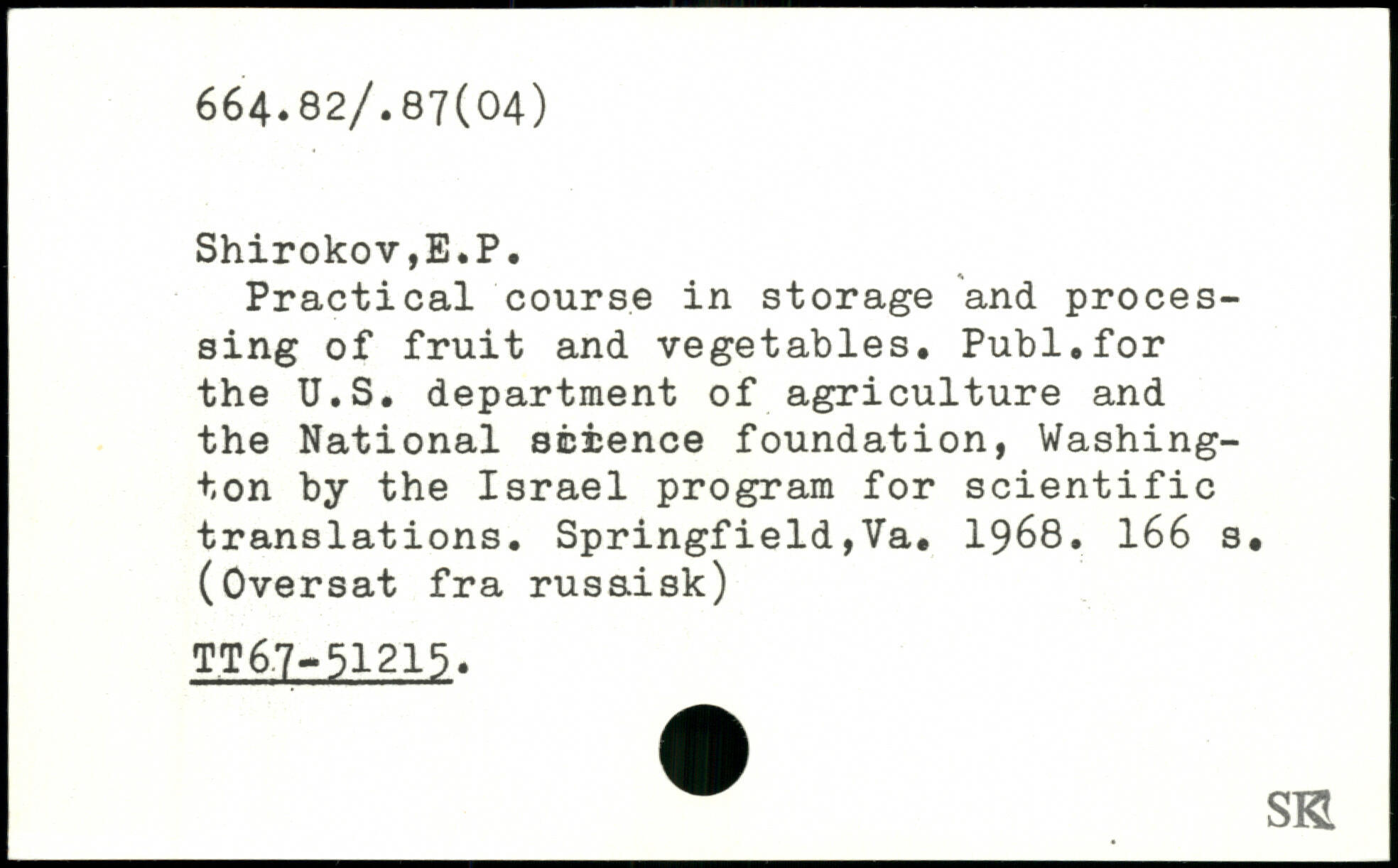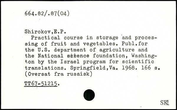Practical course in storage and processing of fruit and vegetables. Publ.for the U.S. department of agriculture and the National science foundation, Washington by the Israel program for scientific translations. Springfield,Va. 1968.