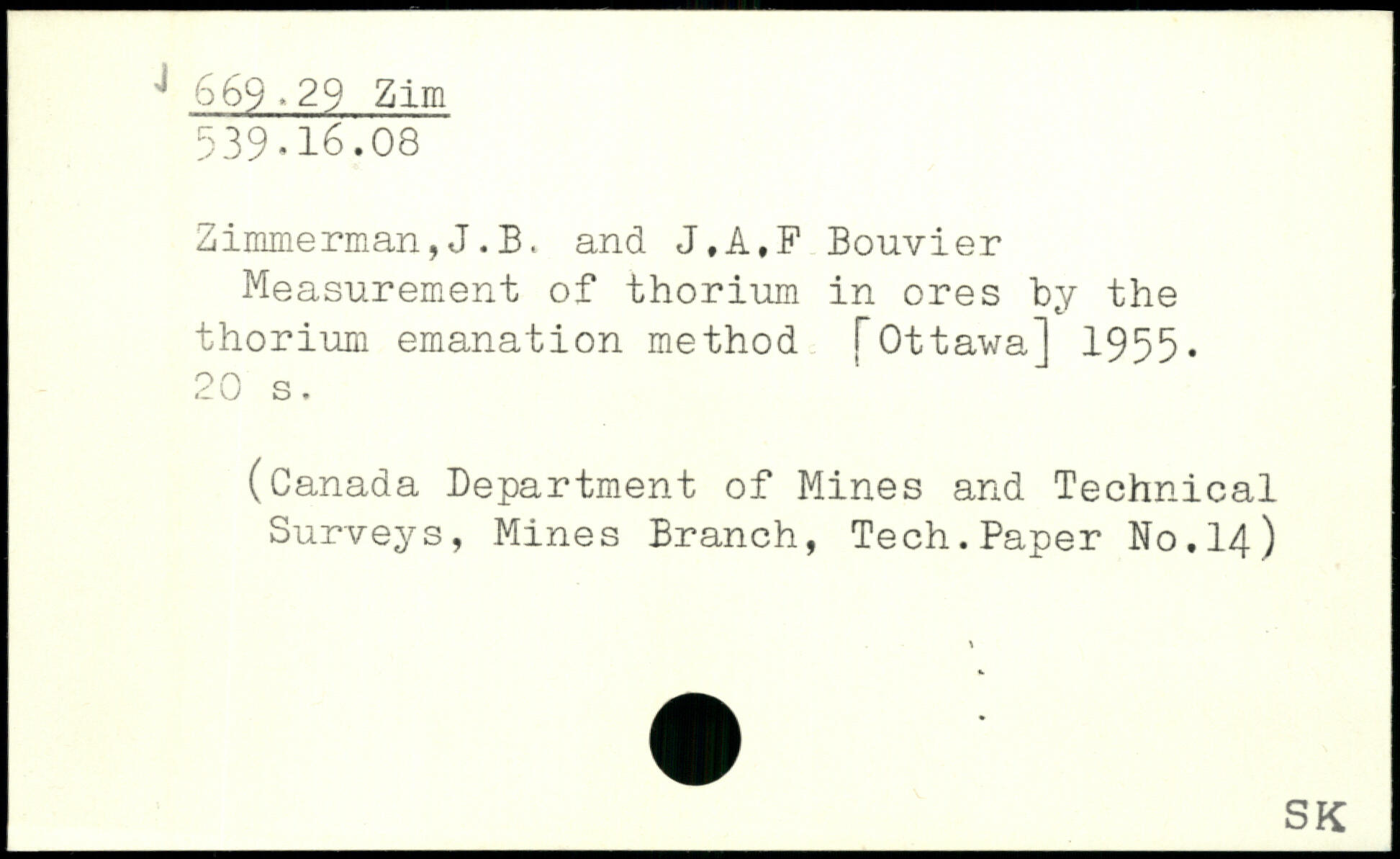Zimmerman,J.B. and J.A.F Bouvier Measurement of thorium in ores by the thorium emanation method
