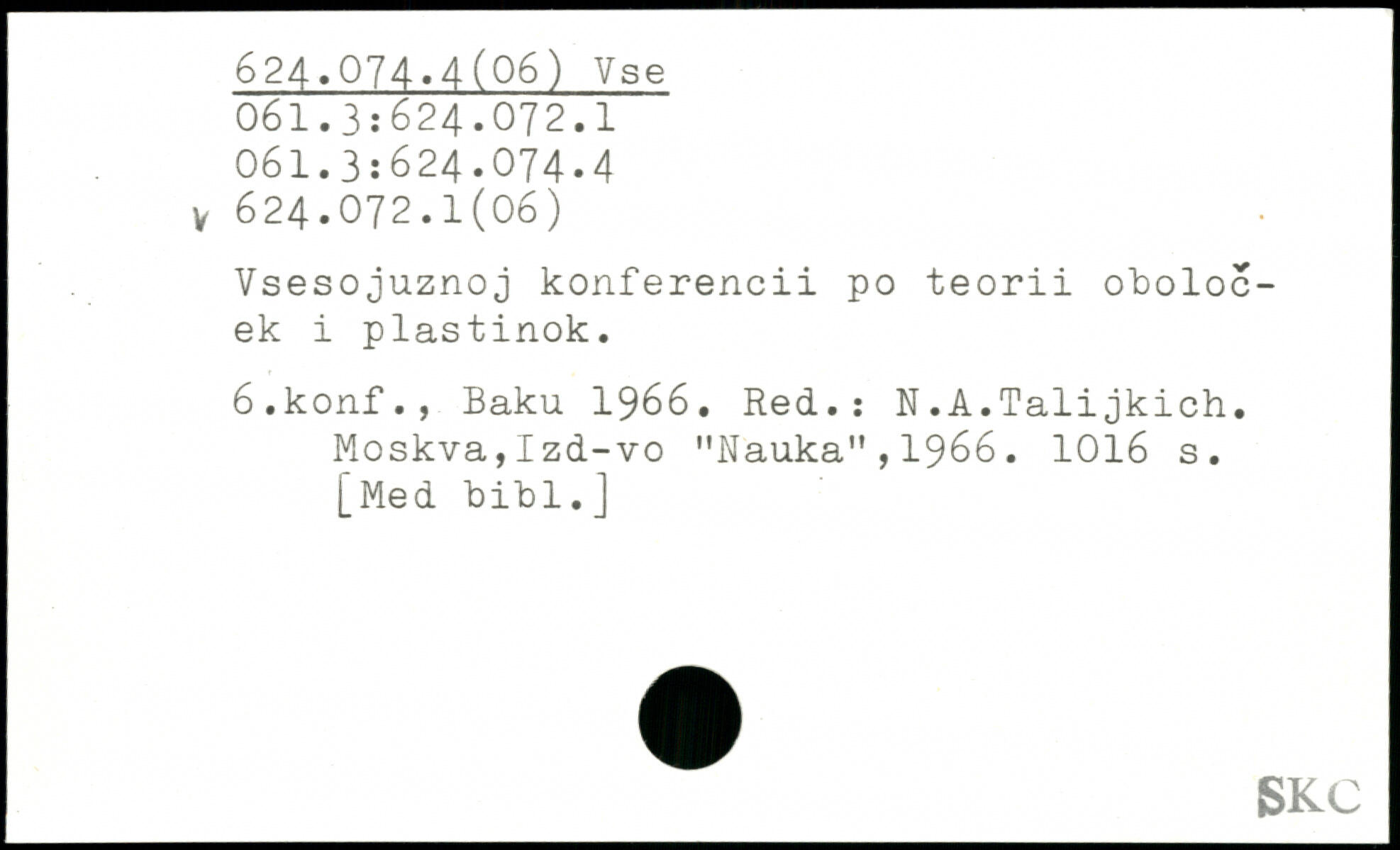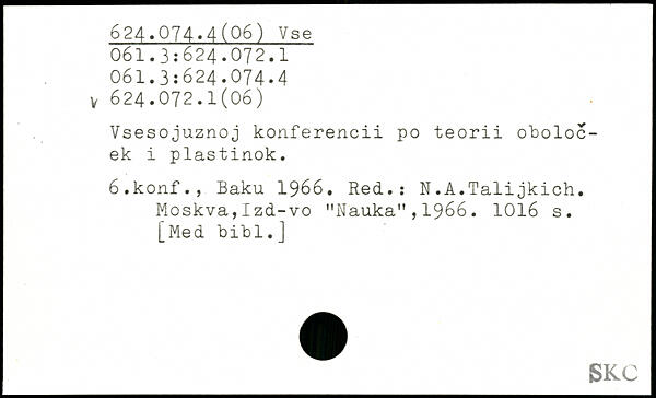 Vsesojuznoj konferencii po teorii oboloc-ek i plastinok. 6.konf., Baku 1966. Red.: N.A.Talijkich. Moskva,Izd-vo "Nauka",1966.