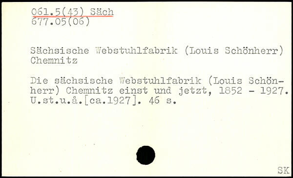Sächsische Ysebsirulilfabrik (Louis Schönherr) Chemnitz hie sächsische Webstuhlfabrik (Louis Schönherr) Chemnitz einst und jetzt, 1852 - 1927. U.st.u.ä.[ca.1927].
