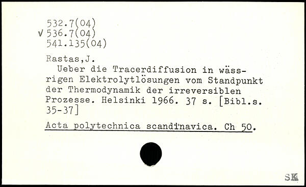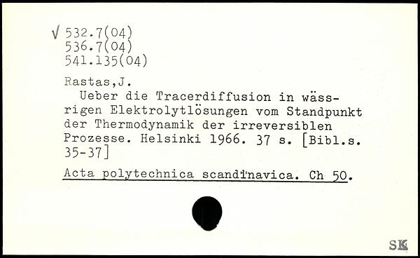 Ueber die Tracerdiffusion in wässrigen Elektrolytlösungen vom Standpunkt der Thermodynamik der irreversiblen Prozesse.