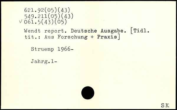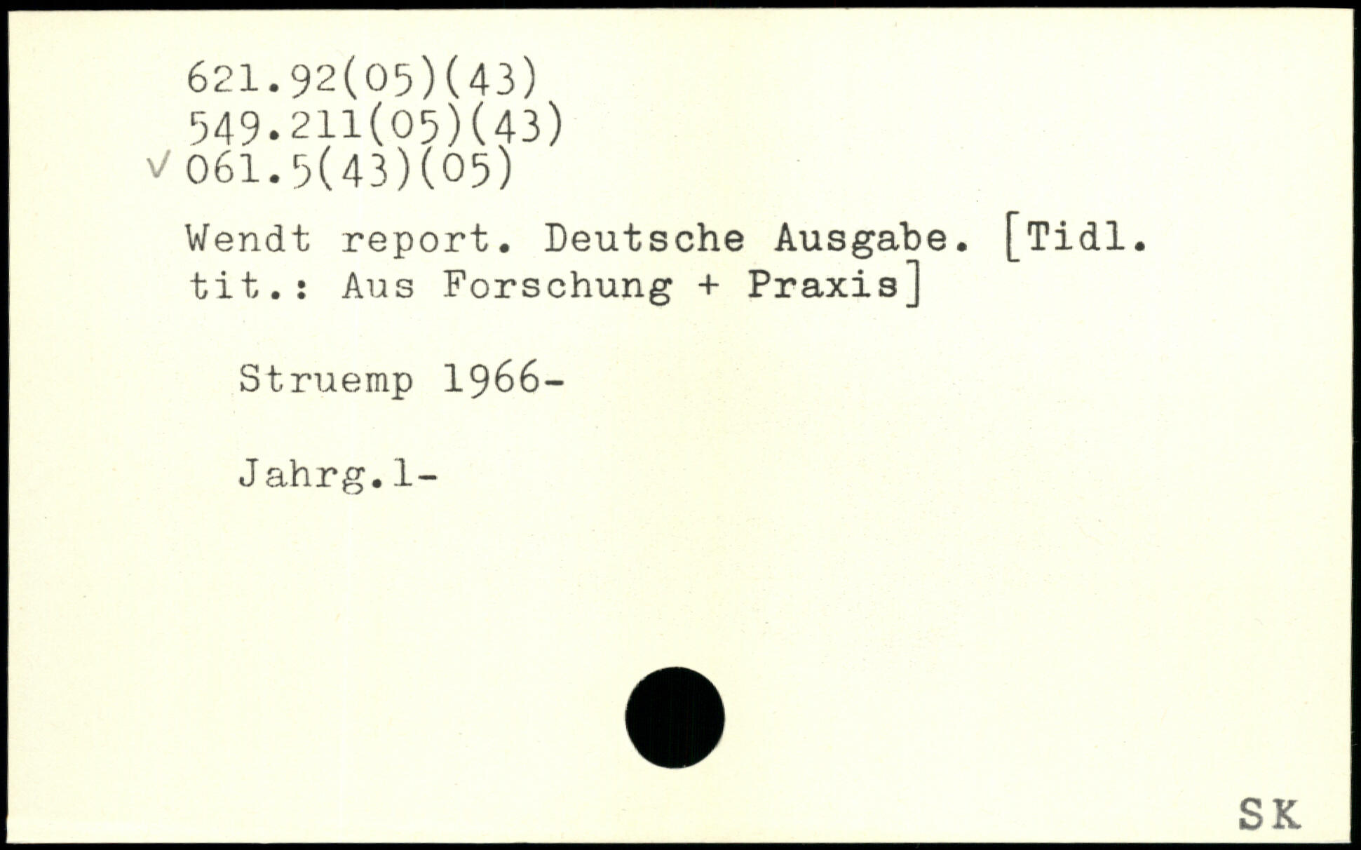 Wendt report. Deutsche Ausgabe. [Tidl. tit.: Aus Forschung + Praxis] Struemp 1966- J ahrg.1-
