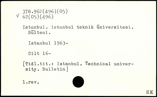 Istanbul. Istanbul teknik universitesi. Bulteni. Istanbul 1963- Cilt 16-