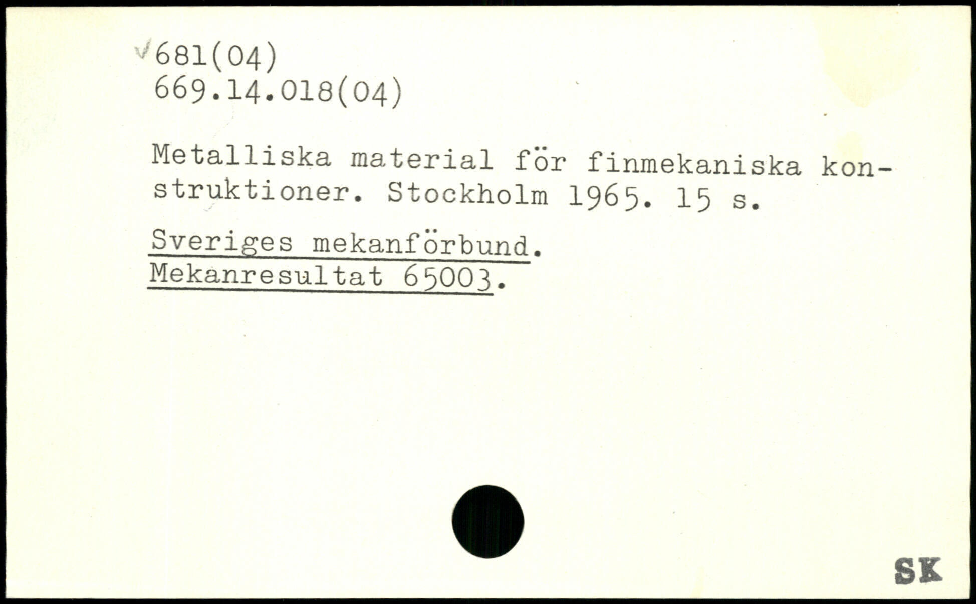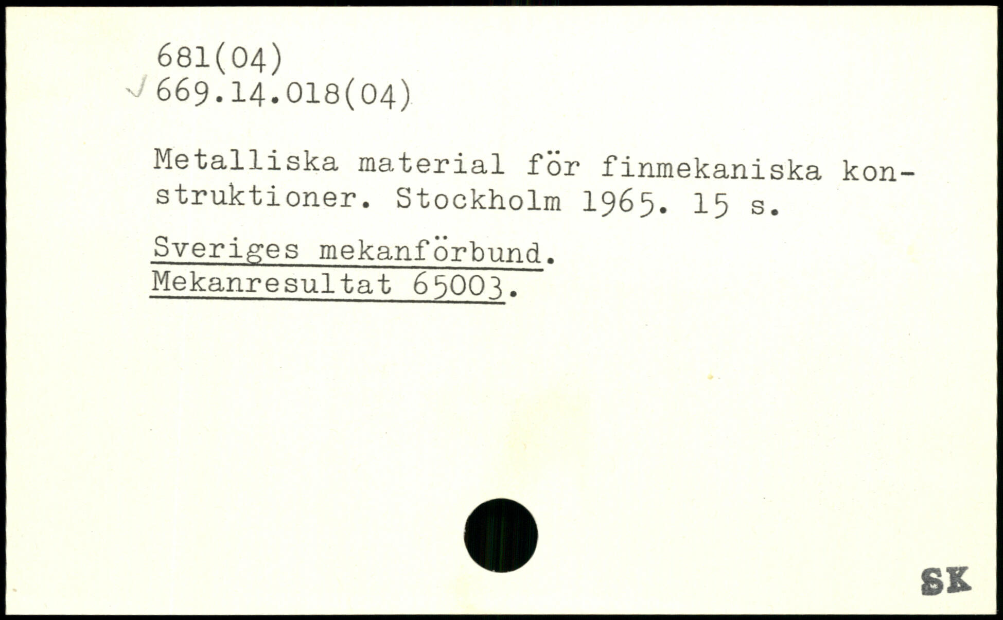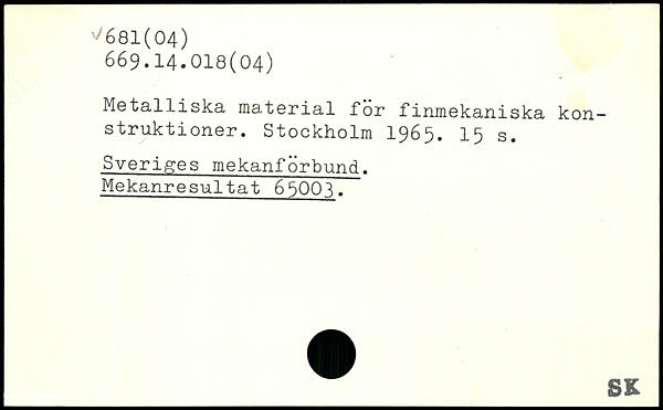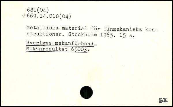 Metalliska material för finmekaniska konstruktioner.