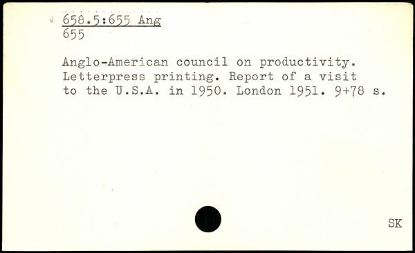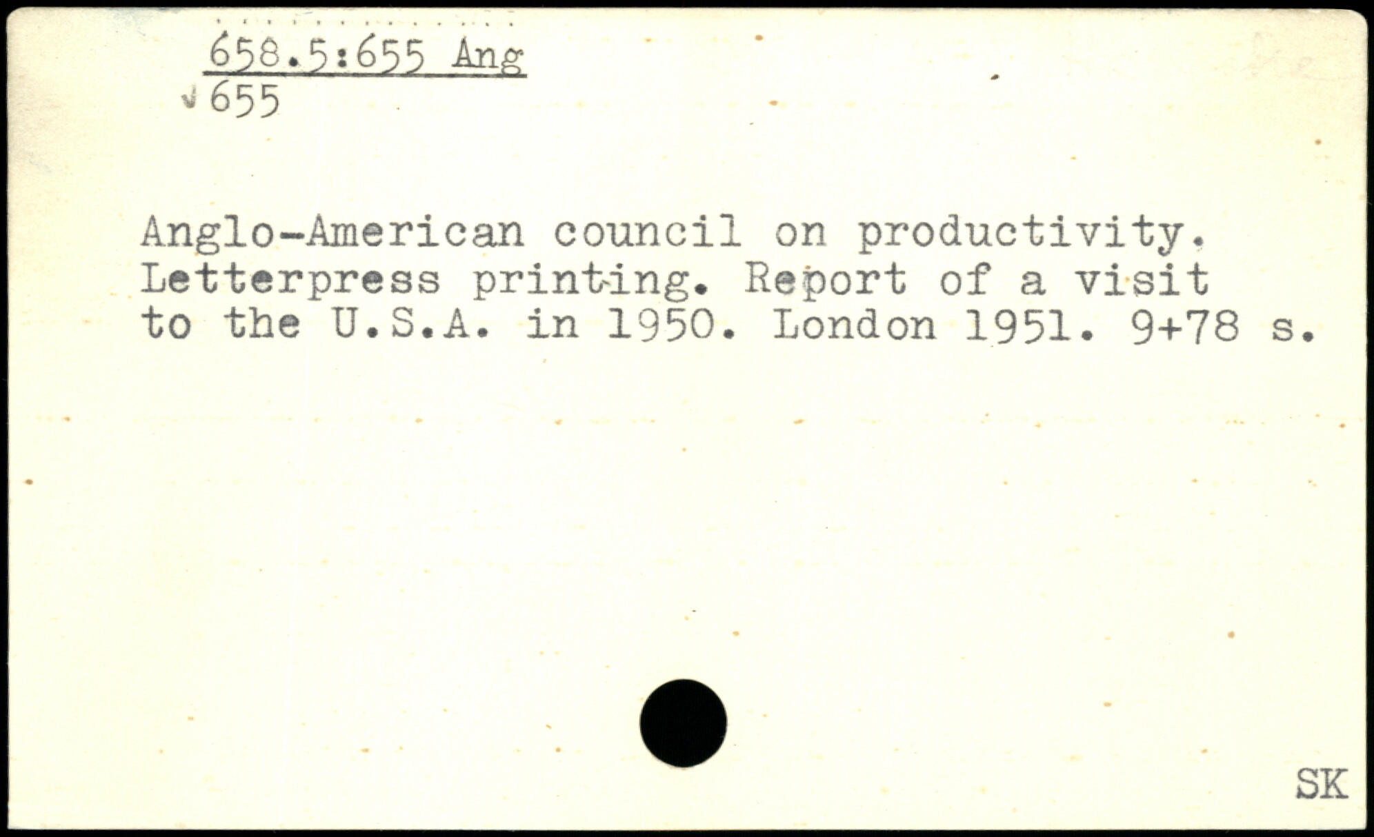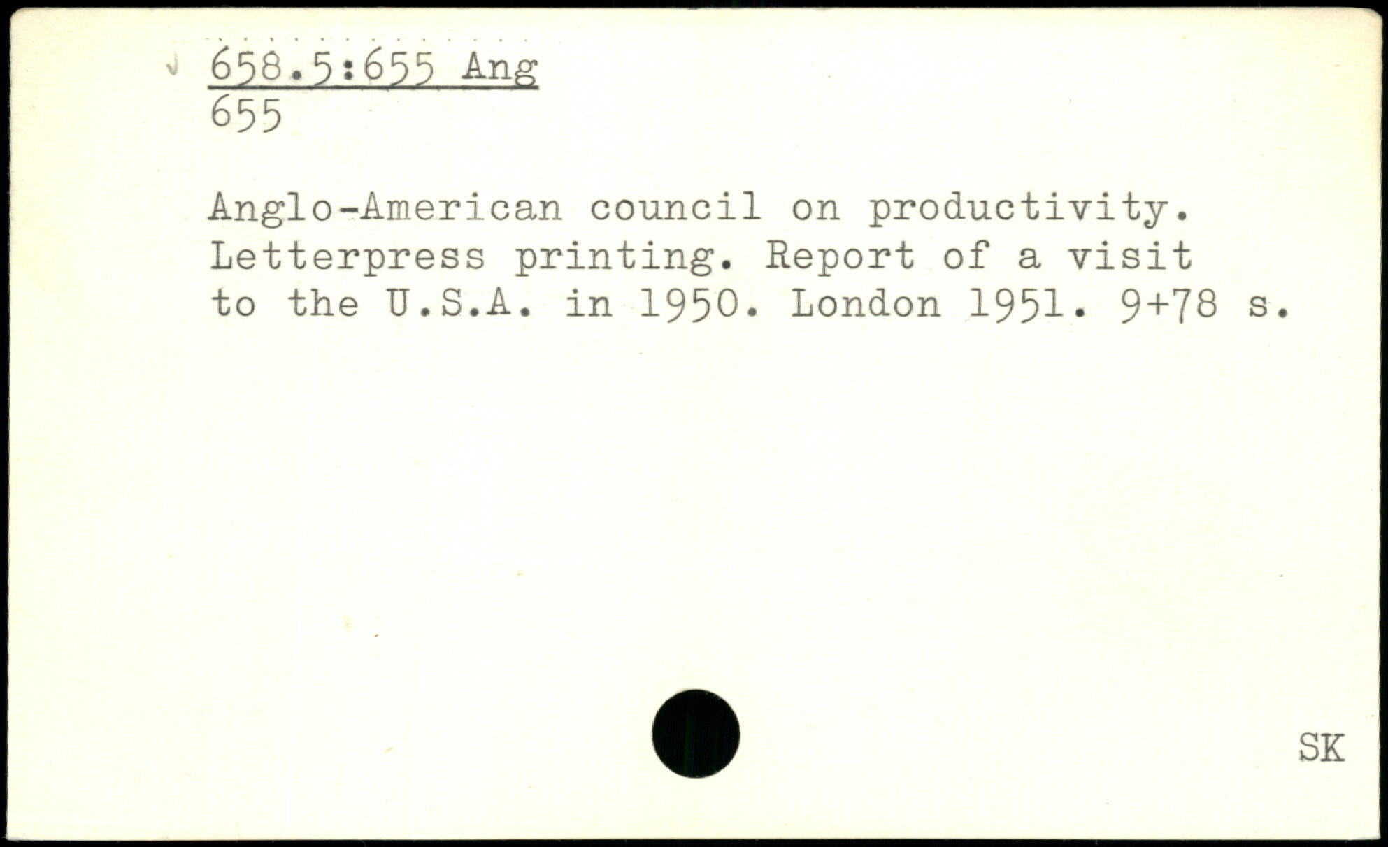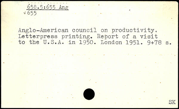 Anglo-American council on productivity. Letterpress printing. Report of a visit to the U.S.A. in 1950.