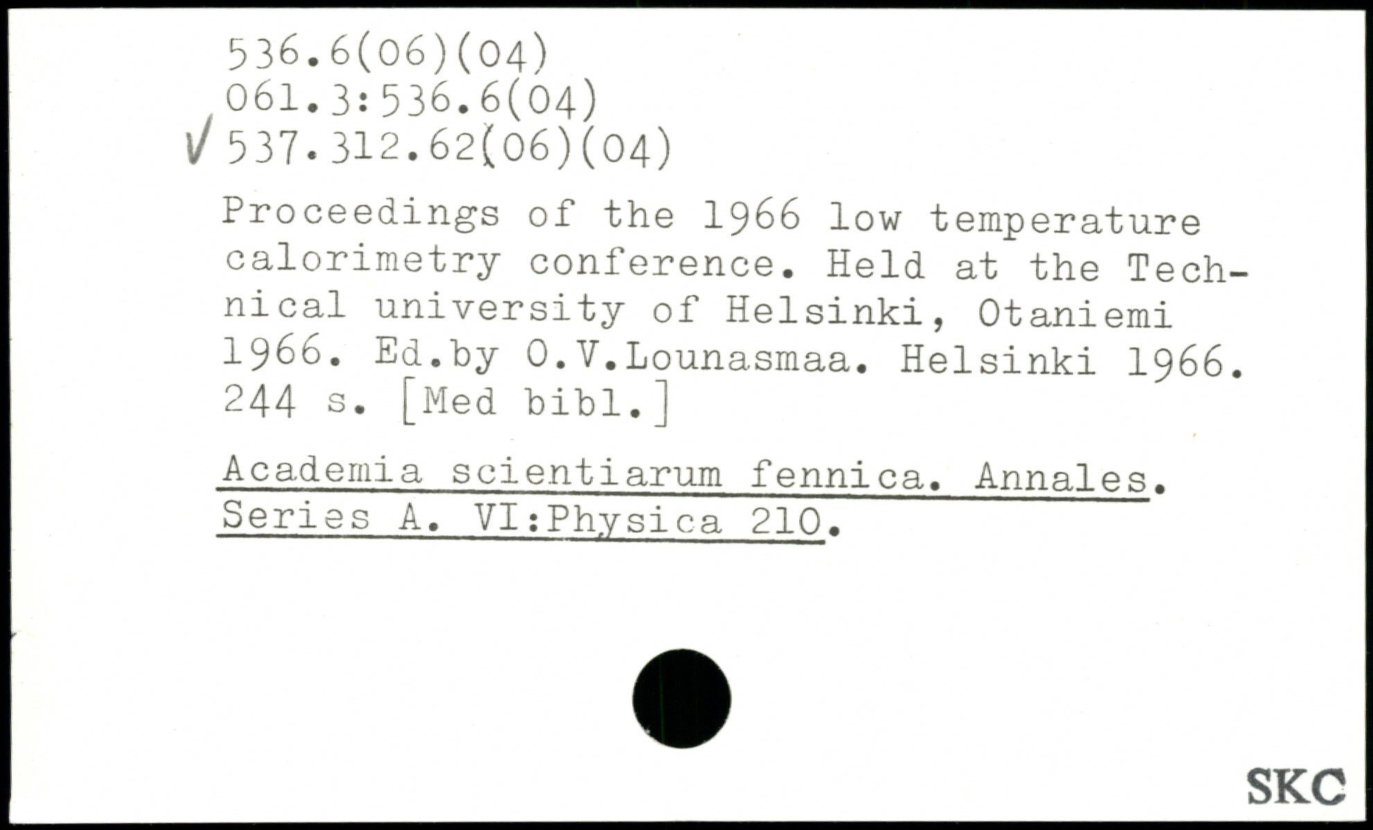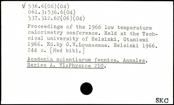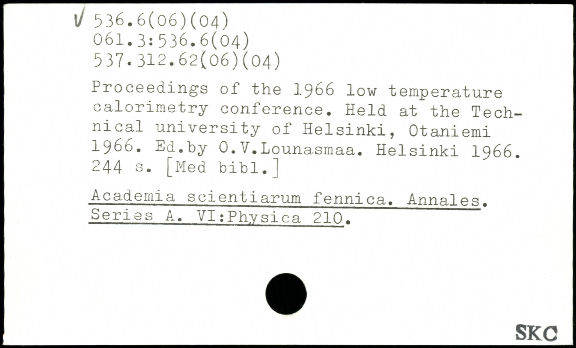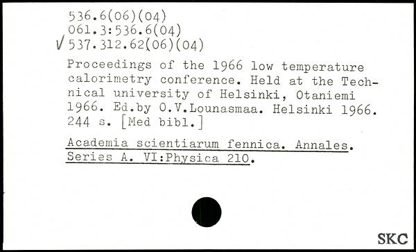 Proceedings of the 1966 low temperature calorimetry conference. Held at the Technical university of Helsinki, Otaniemi 1966. Ed.by 0.V.Lounasmaa.
