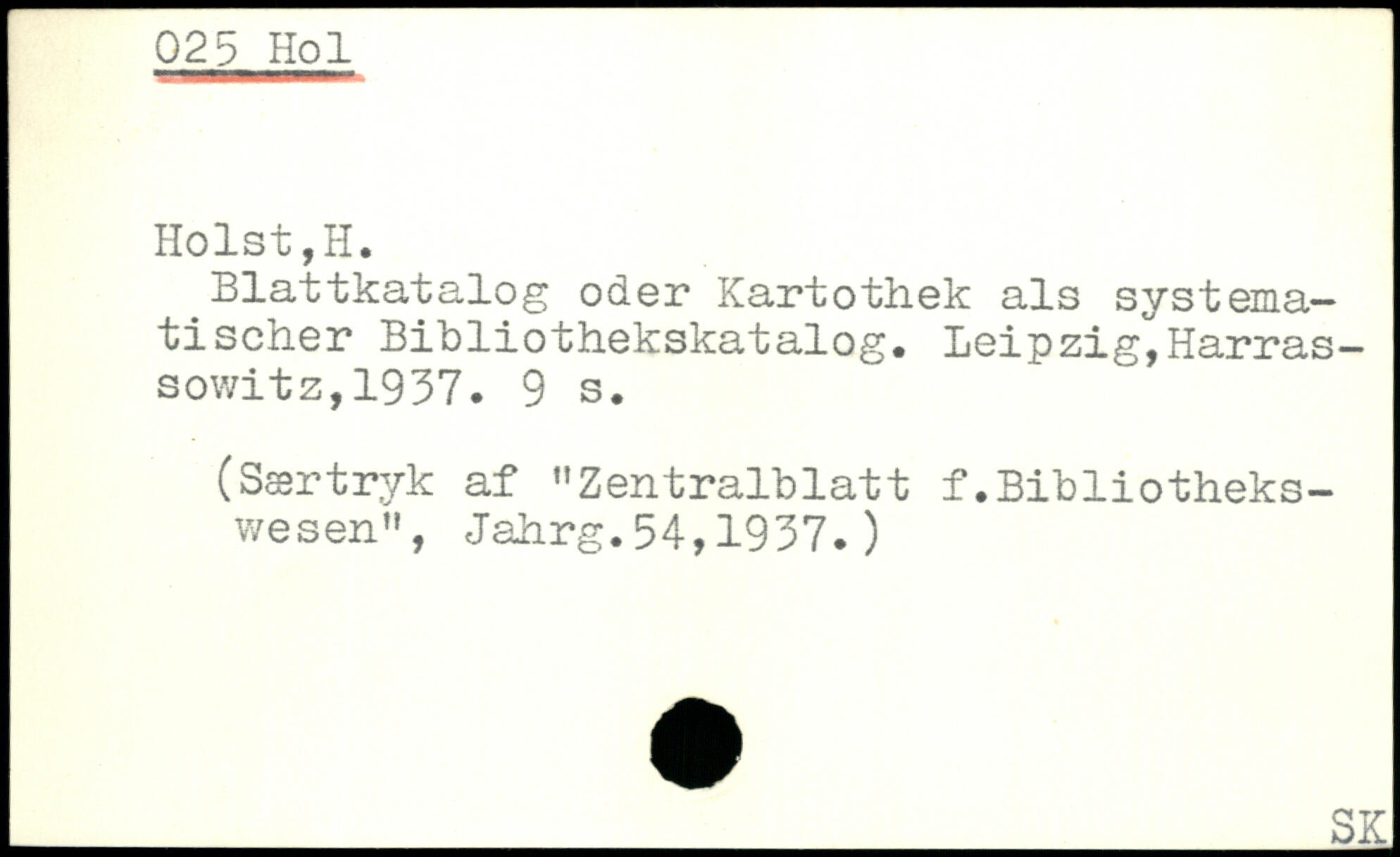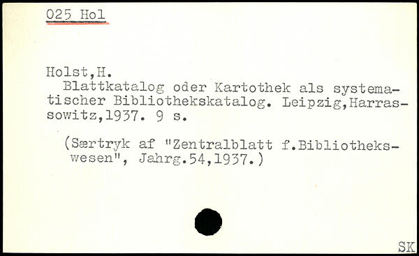^Blattkatalog oder Kartothek als systematischer Bibliothekskatalog. Leipzig,Harras— sowitz,1937.