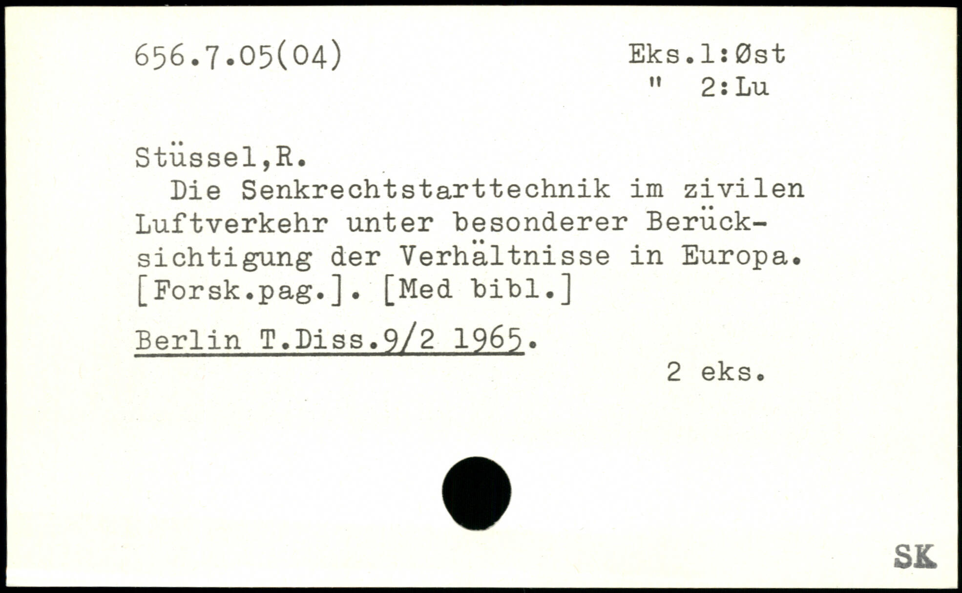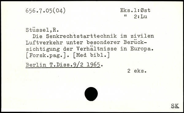 Die Senkrechtstarttechnik im zivilen Luftverkehr unter besonderer Berücksichtigung der Verhältnisse in Europa. [Forsk.pag.]. [Med bibl.] Berlin T.Piss.9/2 1965,