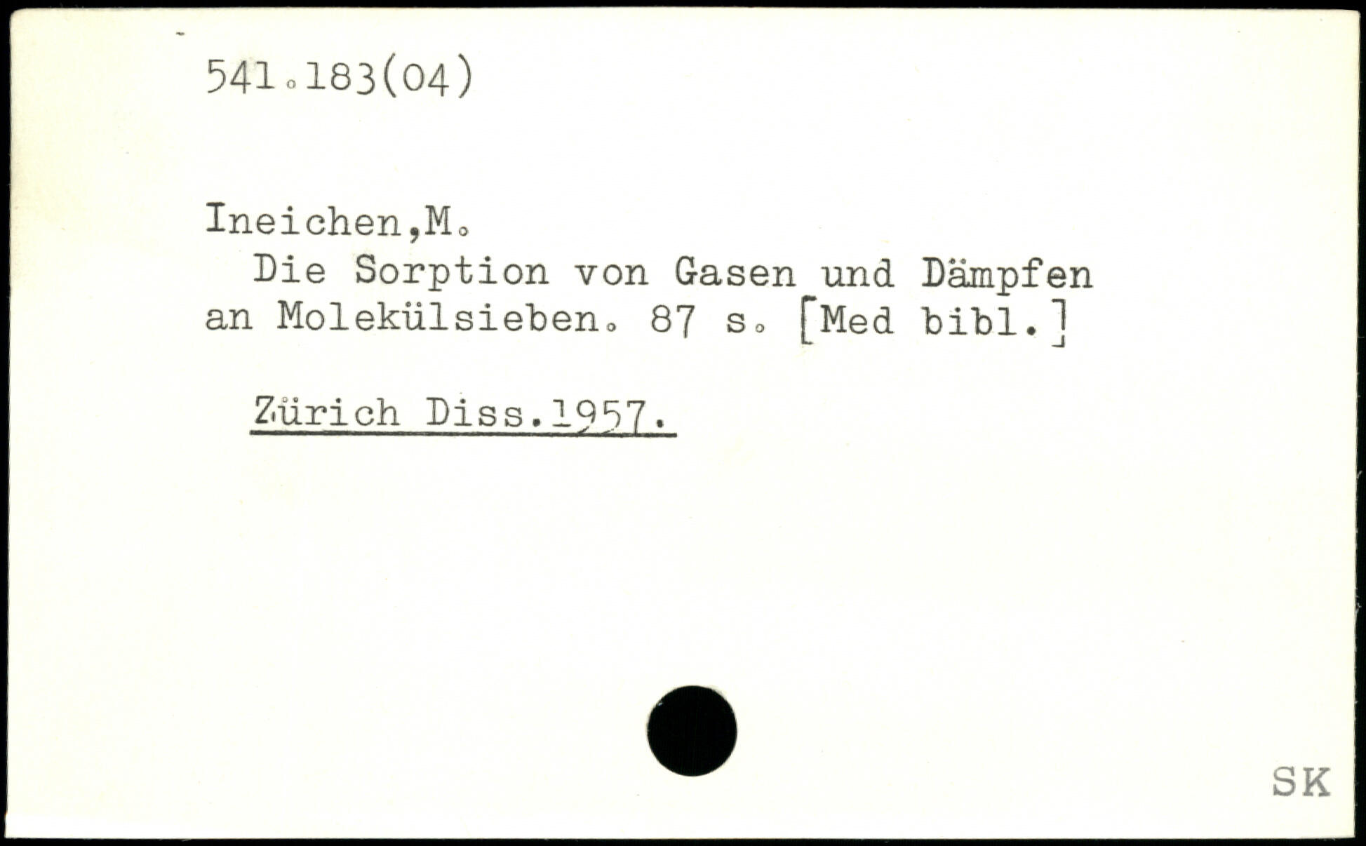Die Sorption von Gasen und Dämpfen an Molekülsieben