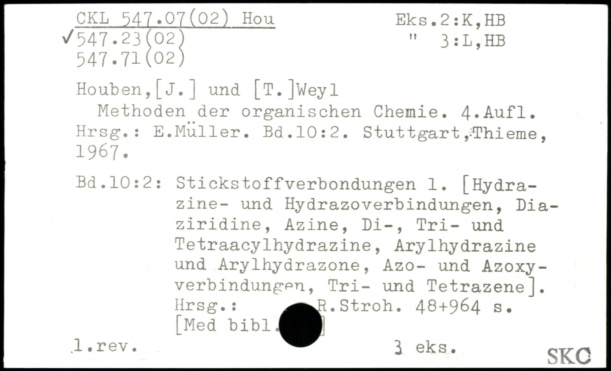 Houben,[j.] und [T.]Weyl Methoden der organischen Chemie.