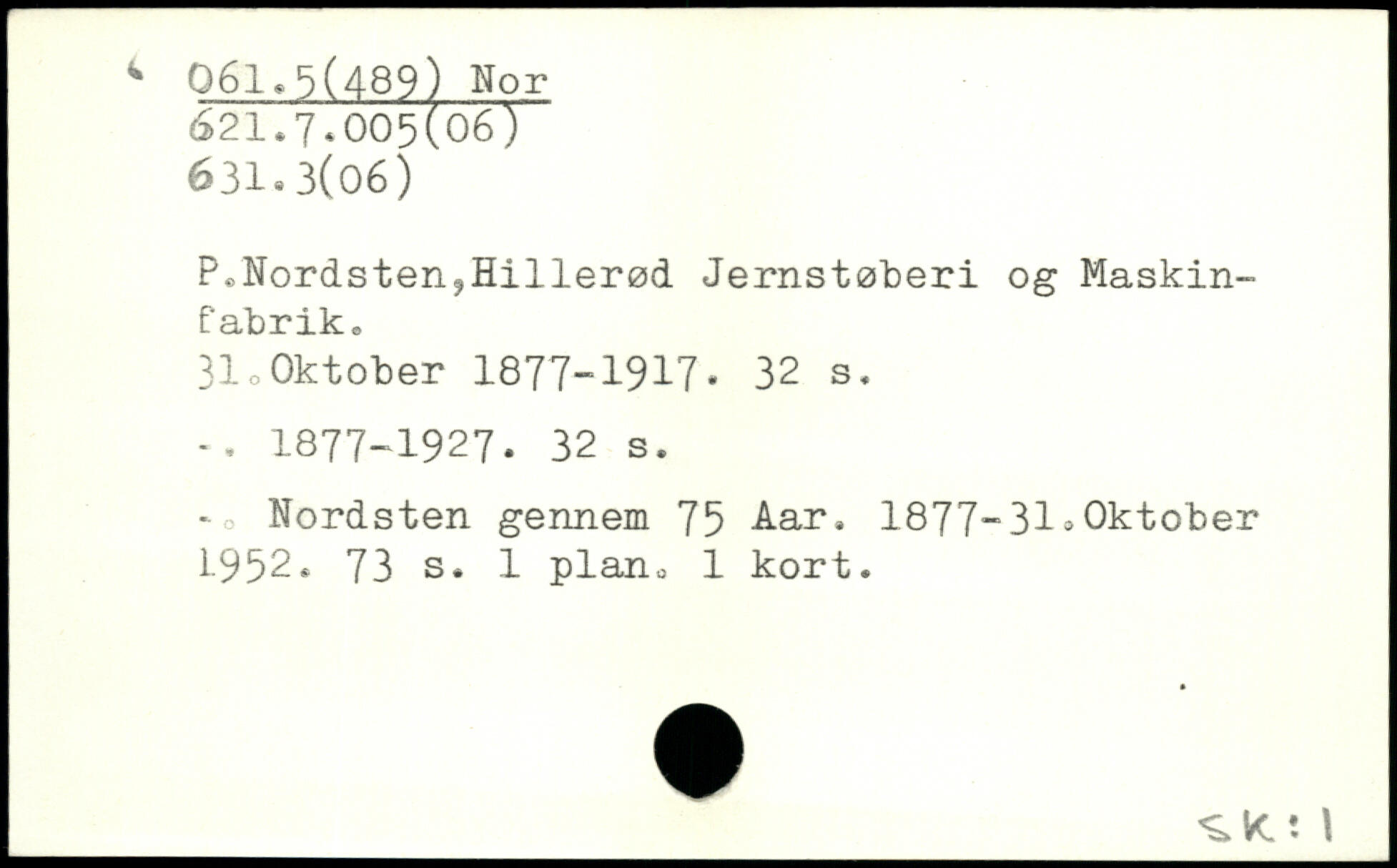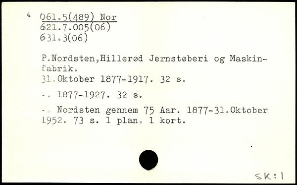 P.,Nordsten?Hillerød Jernstøberi og Maskinfabrik,, 31,Oktober 1877-1917.