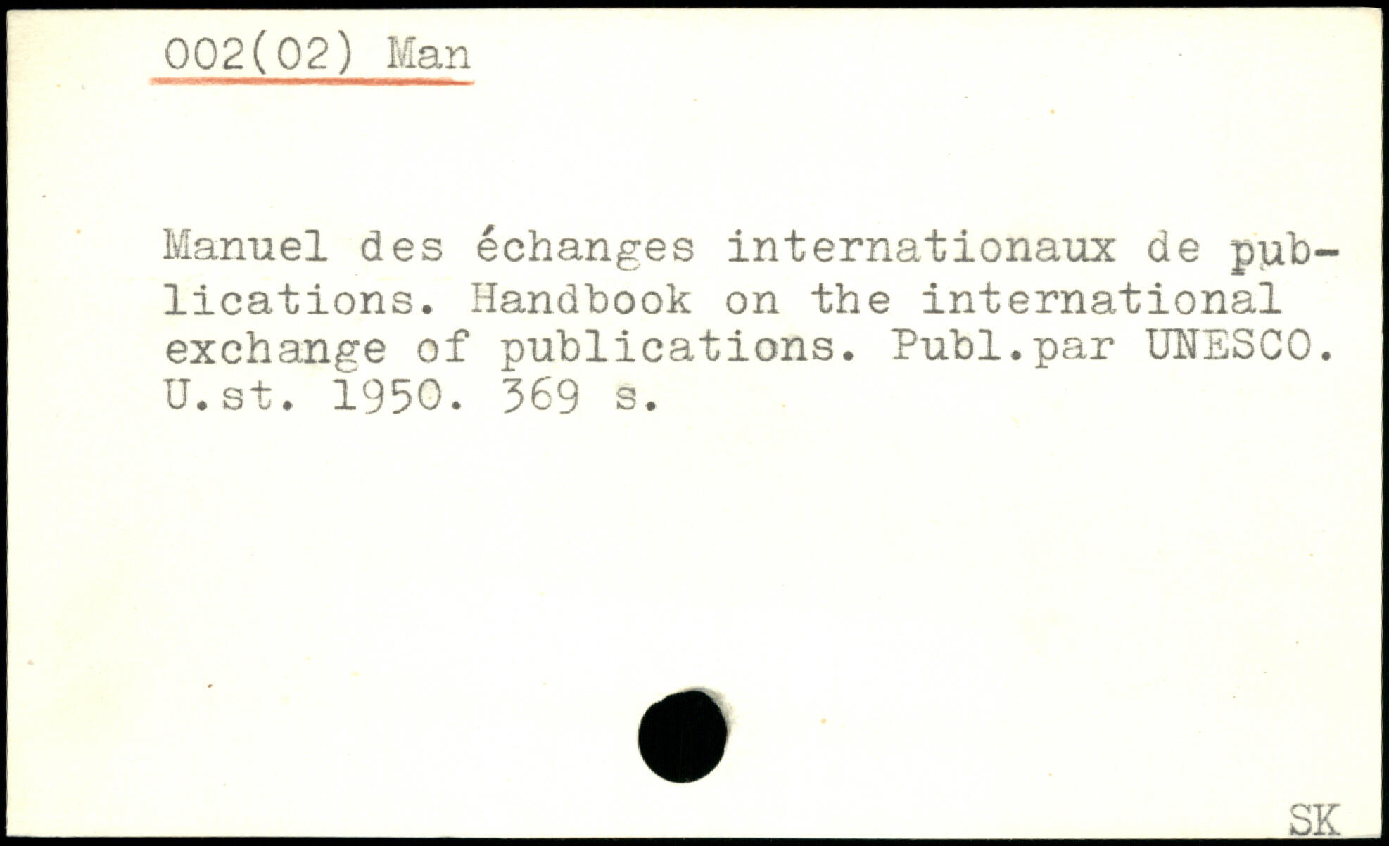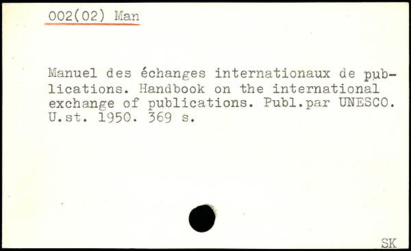 Manuel des échanges internationaux de publications. Handbook on the international exchange of publications. Publ.par UNESCO. U. st. 1950.