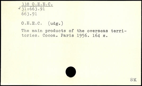 0,E,EoCo (udg,) The main products of the overseas territories. Cocoa.