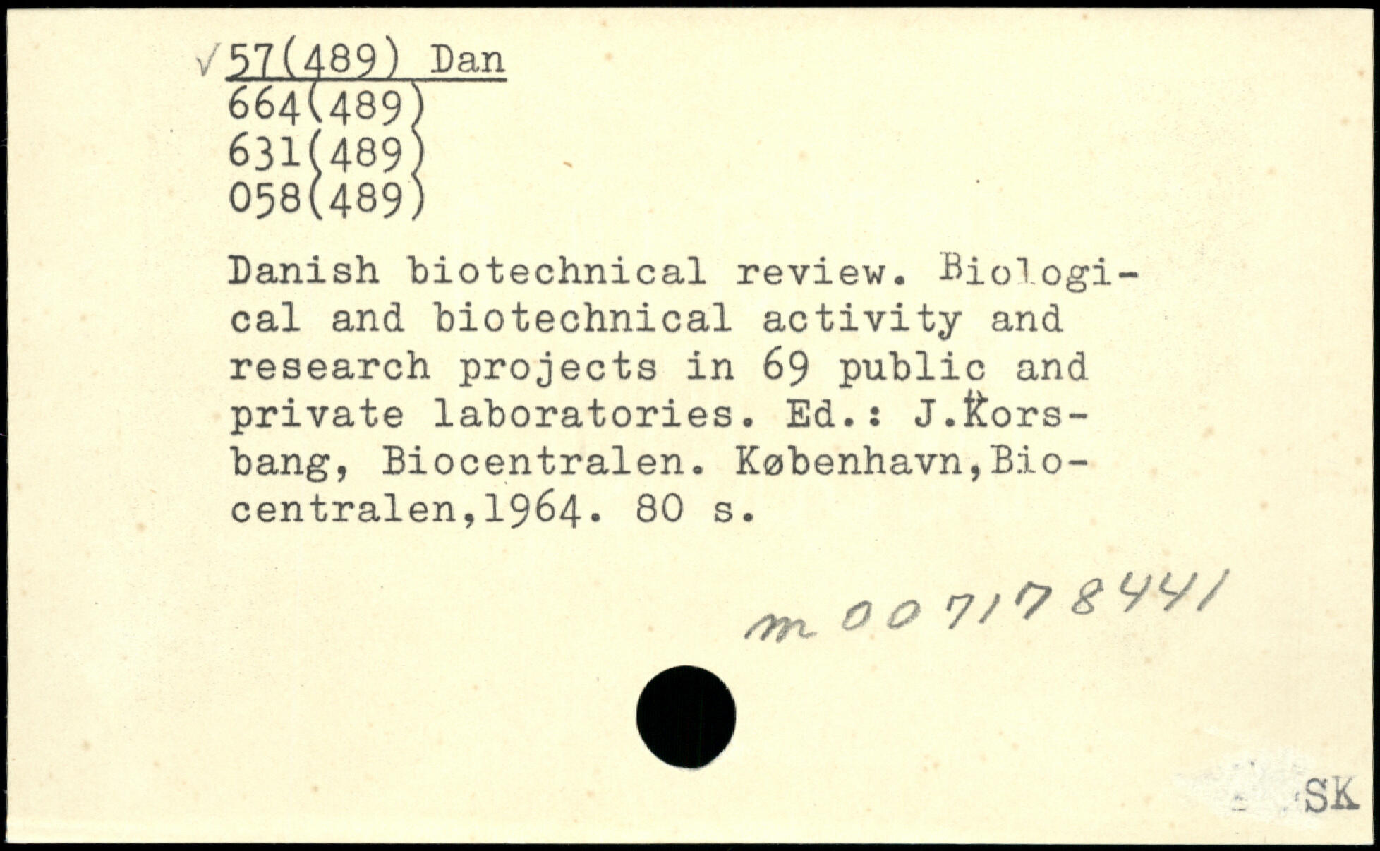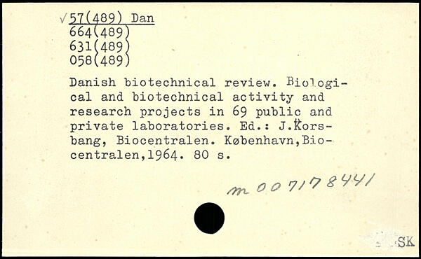 Danish biotechnical review. Biological and biotechnical activity and research projects in 69 public and private laboratories. Ed.: J.ttors-bang, Biocentralen.