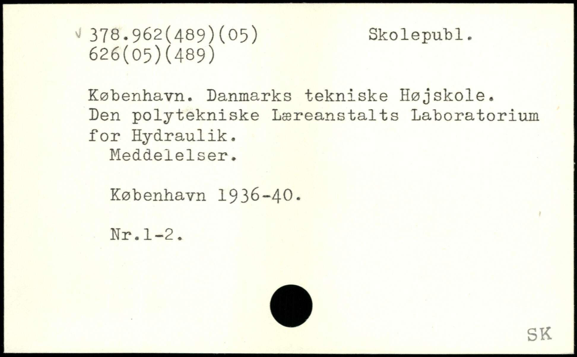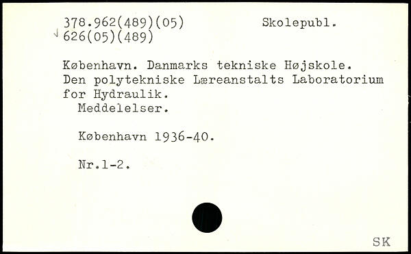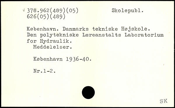 København. Danmarks tekniske Højskole. Den polytekniske Læreanstalts Laboratorium for Hydraulik. Meddelelser.