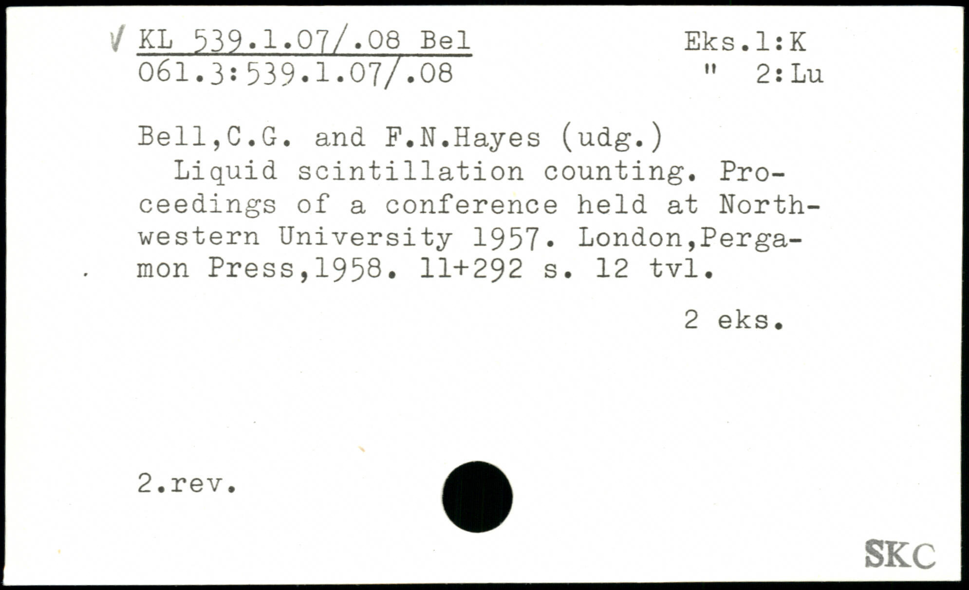 Liquid scintillation counting. Proceedings of a conference held at Northwestern University 1957.