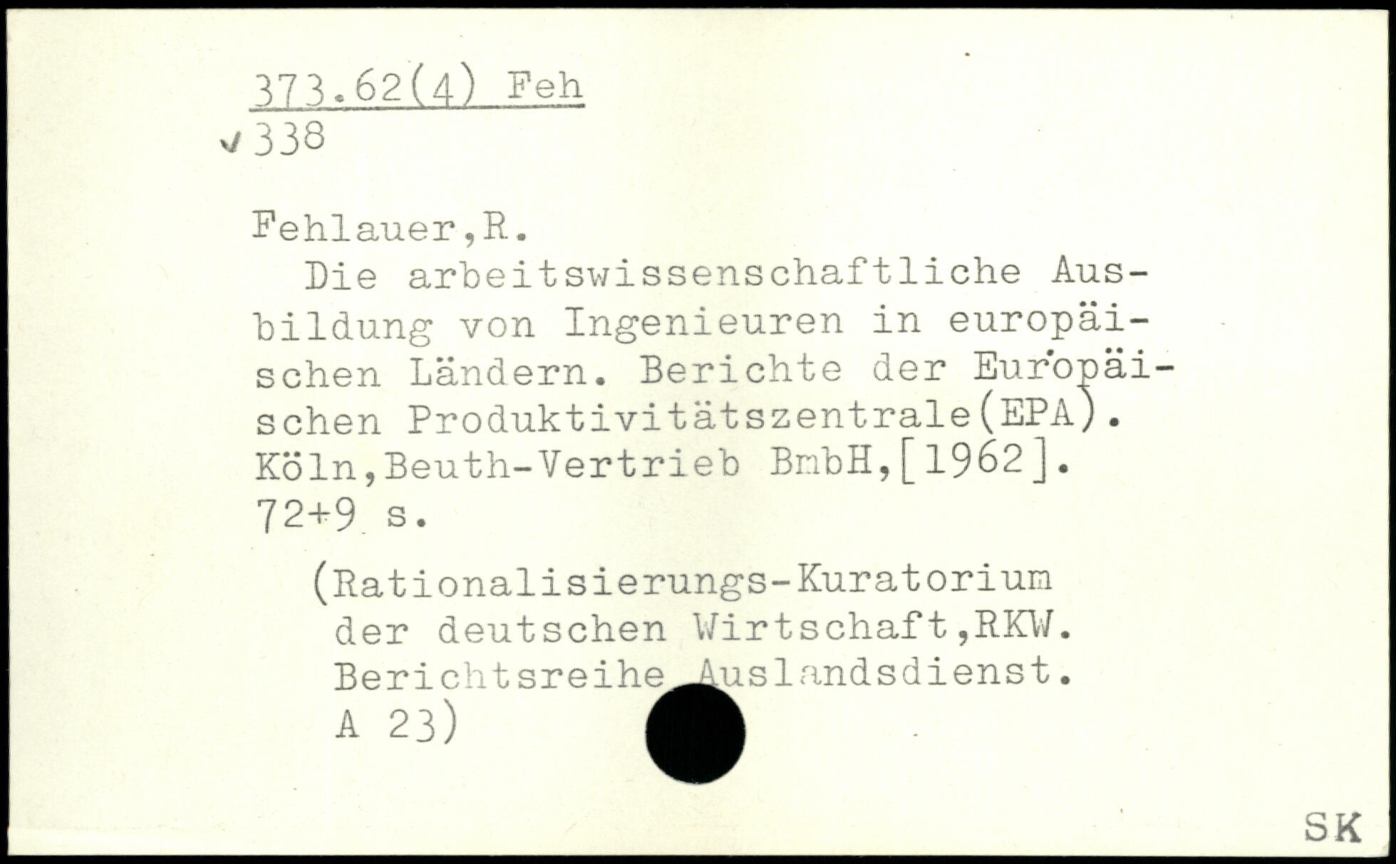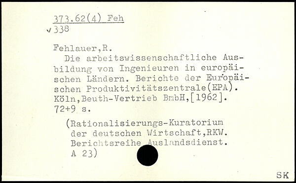 Die arheitswissenschaftliche Ausbildung von Ingenieuren in europäischen Ländern. Berichte der Europäischen Produktivitätszentrale(EPA).