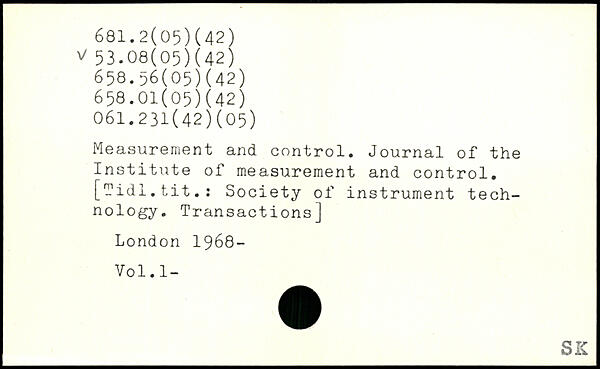 Measurement and control. Journal of the Institute of measurement and control, [-idl.tit.: Society of instrument technology. Transactions]