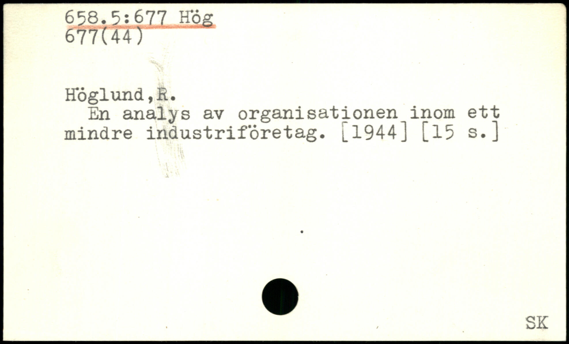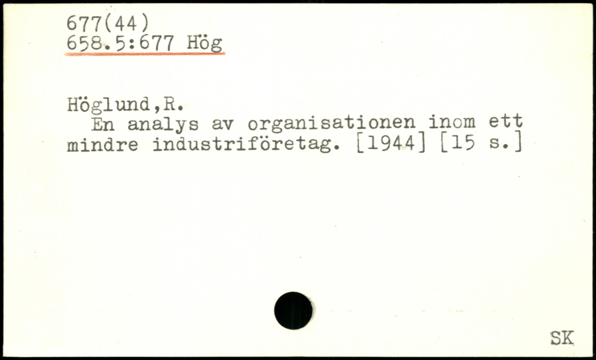 En analys av organisationen inom ett mindre industriföretag. 1944] [15