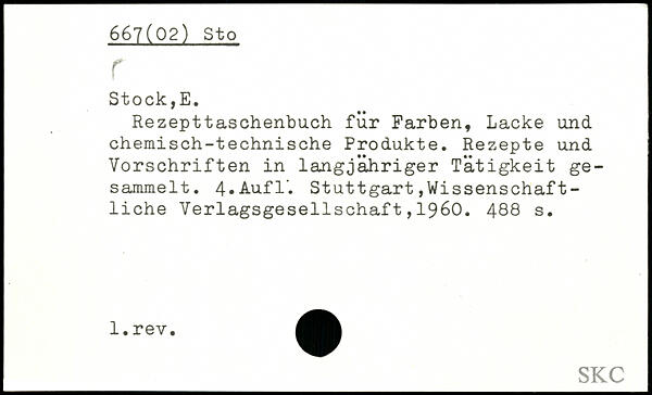 Rezepttaschenbuch für Farben, Lacke und chemisch-technische Produkte. Rezepte und Vorschriften in langjähriger Tätigkeit gesammelt.