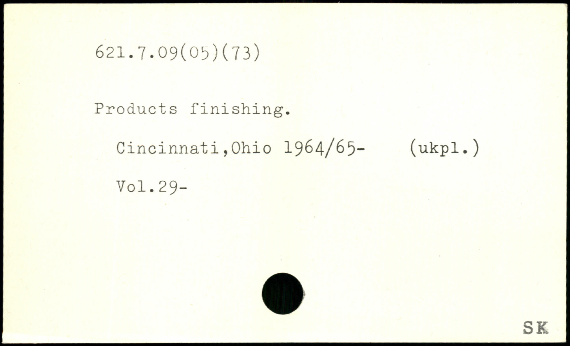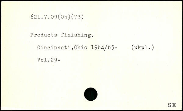 Products finishing. Cincinnati,Ohio 1964/65- (ukpl.) V0I.29-