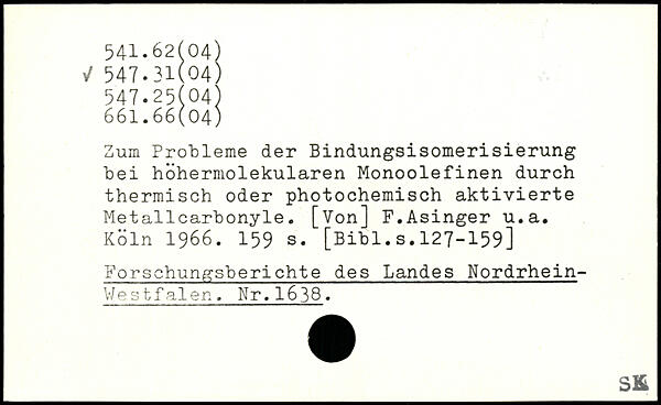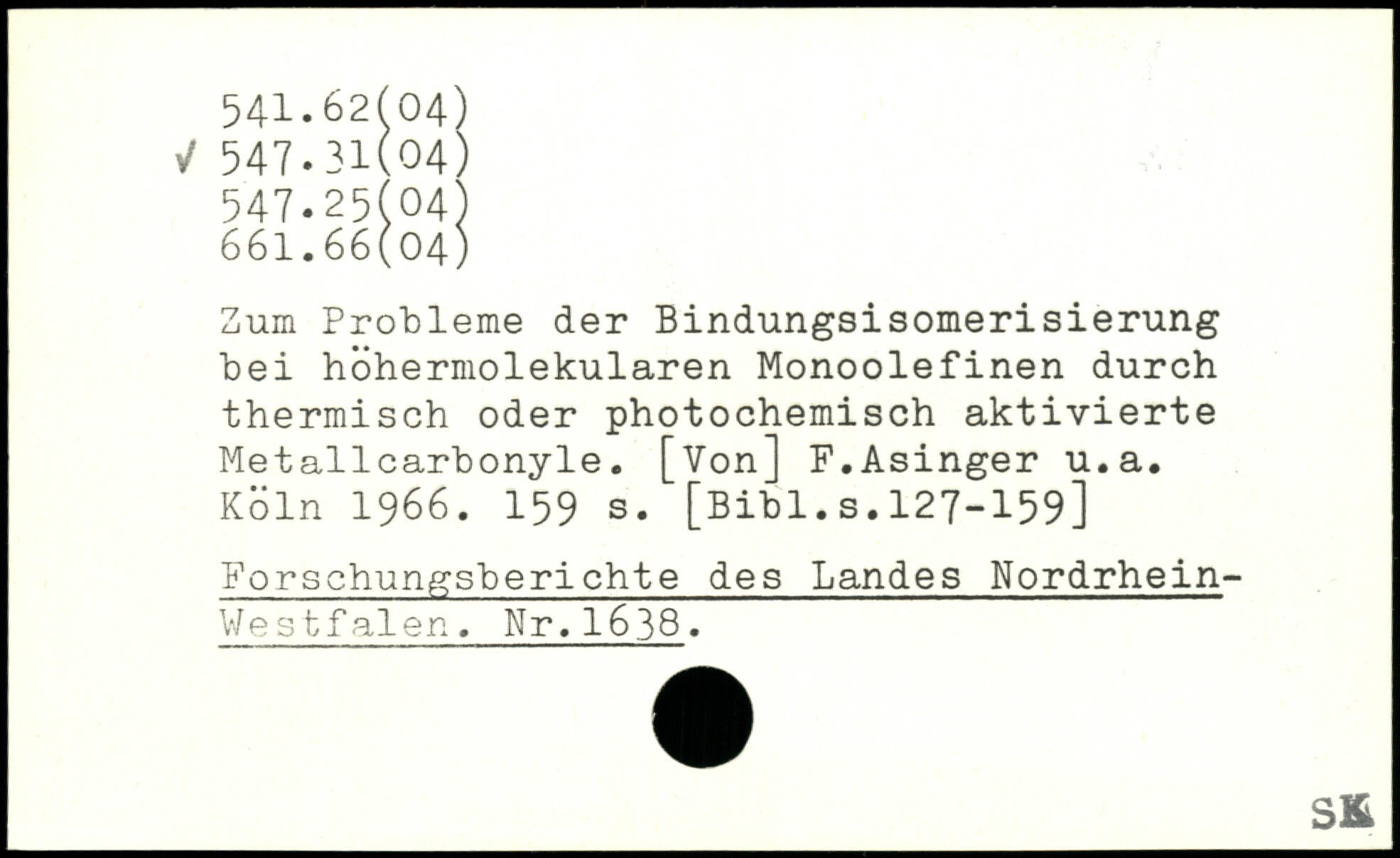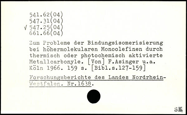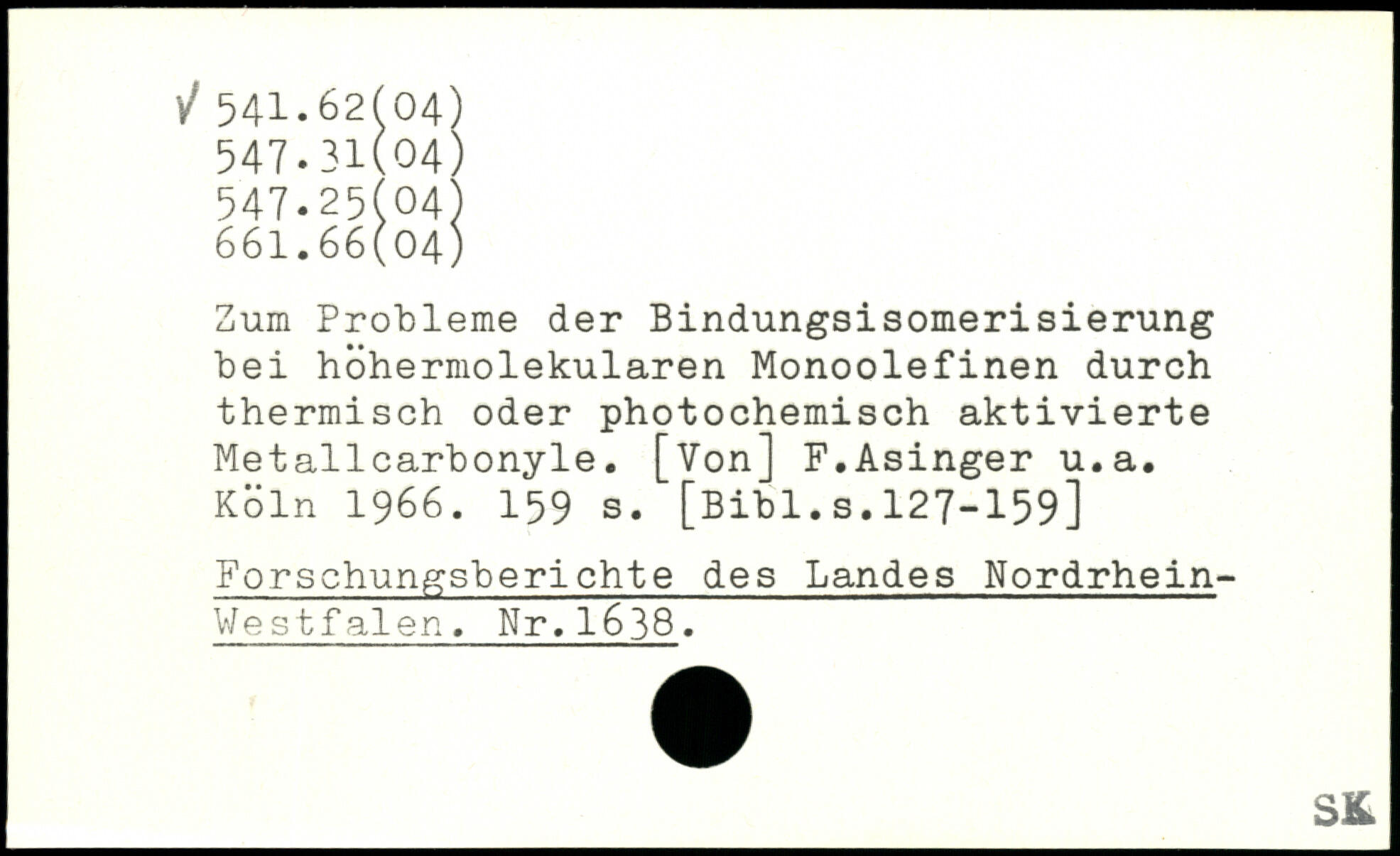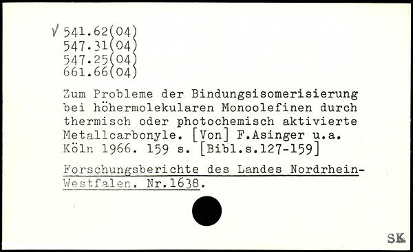 Zum Probleme der Bindungsisomerisierung bei höhermolekularen Monoolefinen durch thermisch oder photochemisch aktivierte Metallcarbonyle. [Von] F.Asinger u.a.