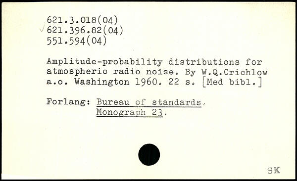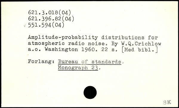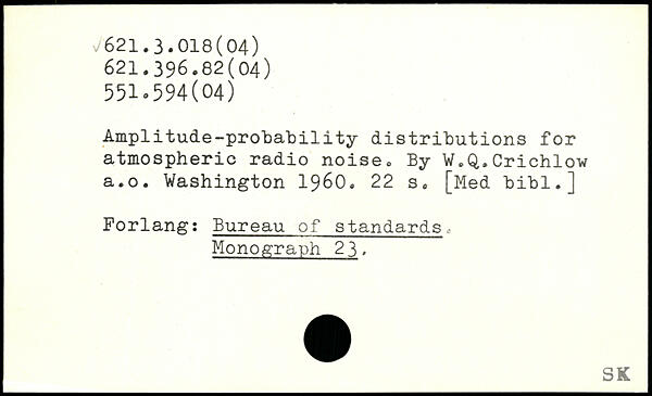 Amplitude-probability distributions for atmospheric radio noise. By W.Q.Crichlow a.o.