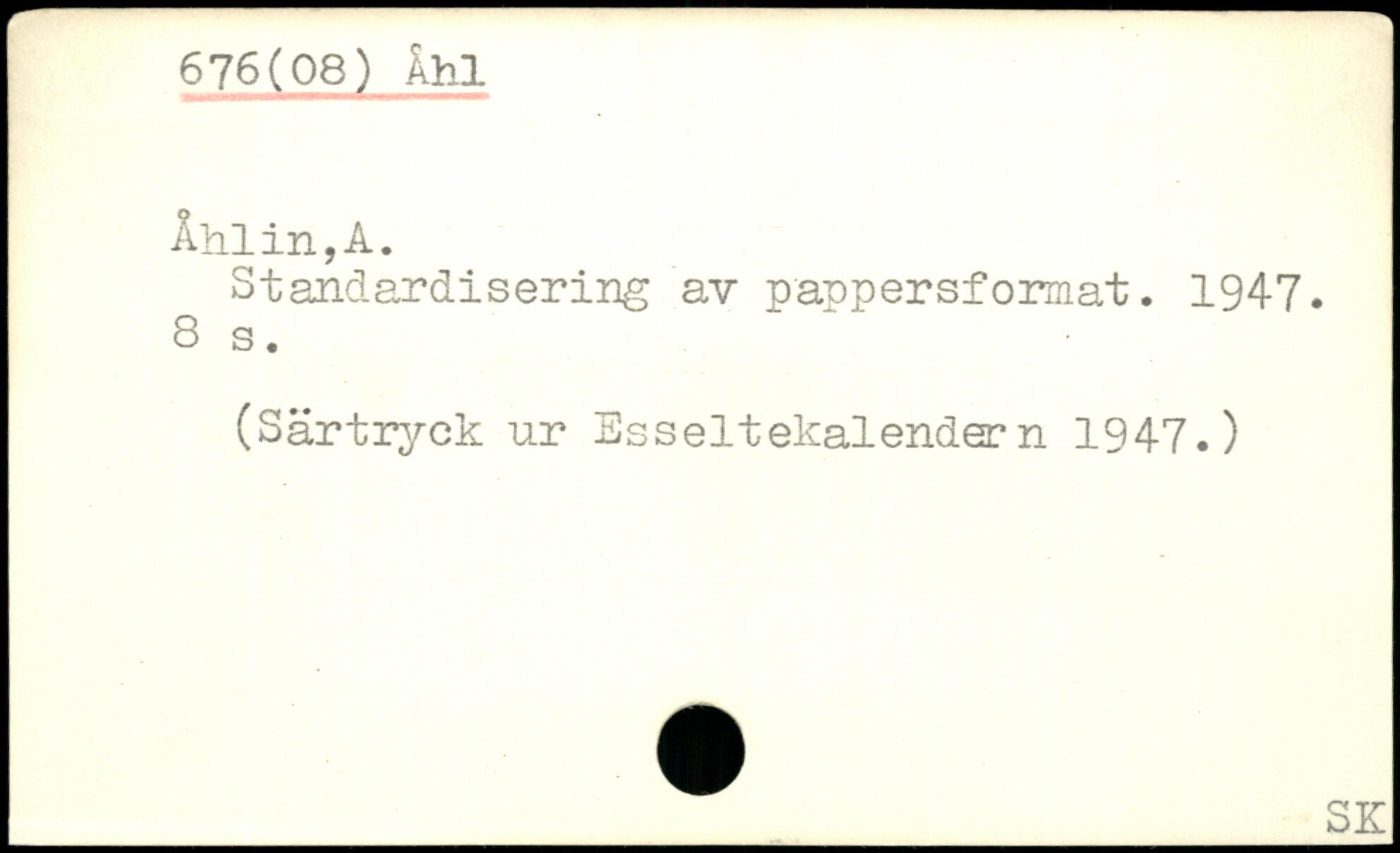 Standardisering av pappersformat. 1947. 8s. (Särtryck ur Esseitekalendern 1947.) _SK