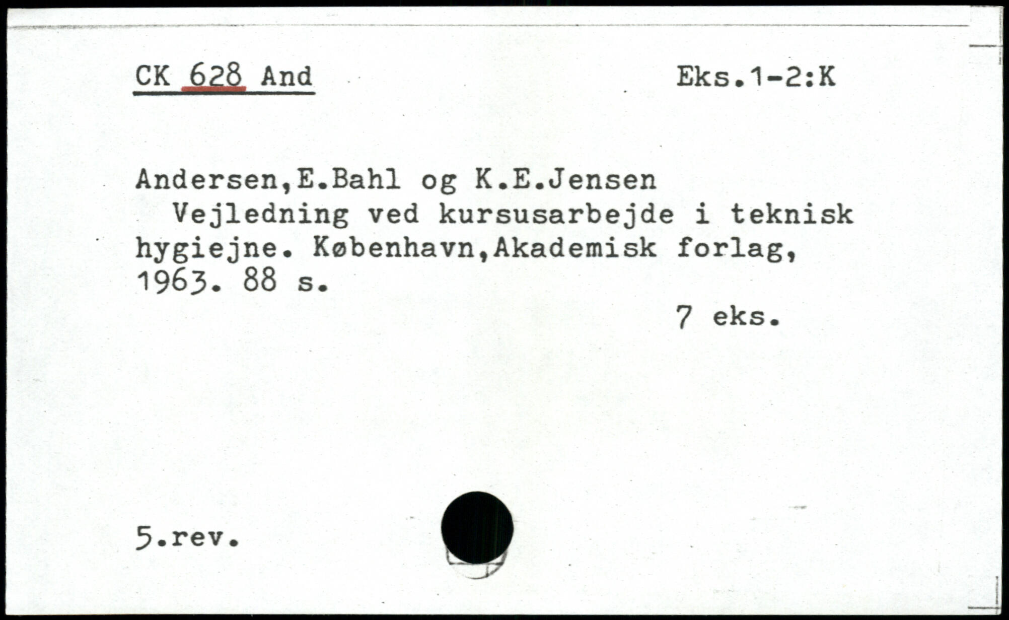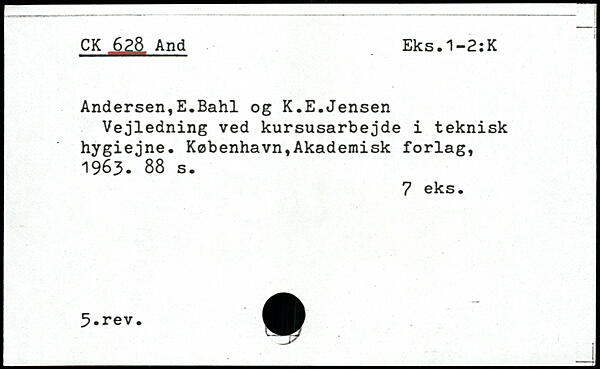 Andersen,E.Bahl og K.E.Jensen Vejledning ved kursusarbejde i teknisk hygiejne.