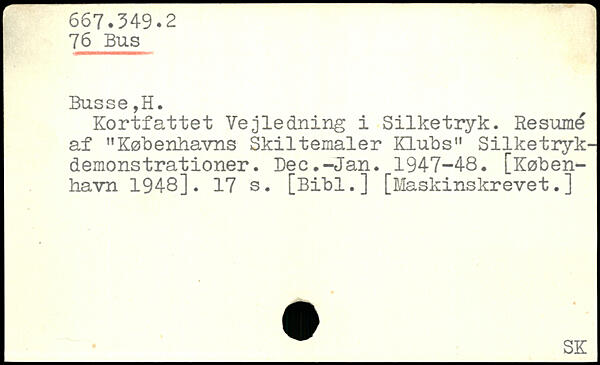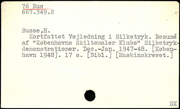 Kortfattet Vejledning i Silketryk. Resumé af ”Københavns Skiltemaler Klubs” Silketrykdemonstrationer. Dec.-Jan. 1947-48.
