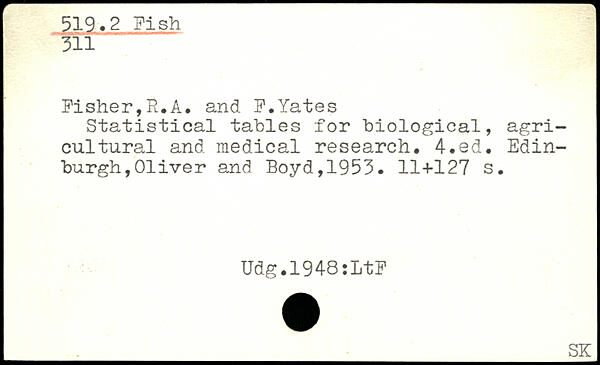 Statistical tables for biological, agricultural and medical research