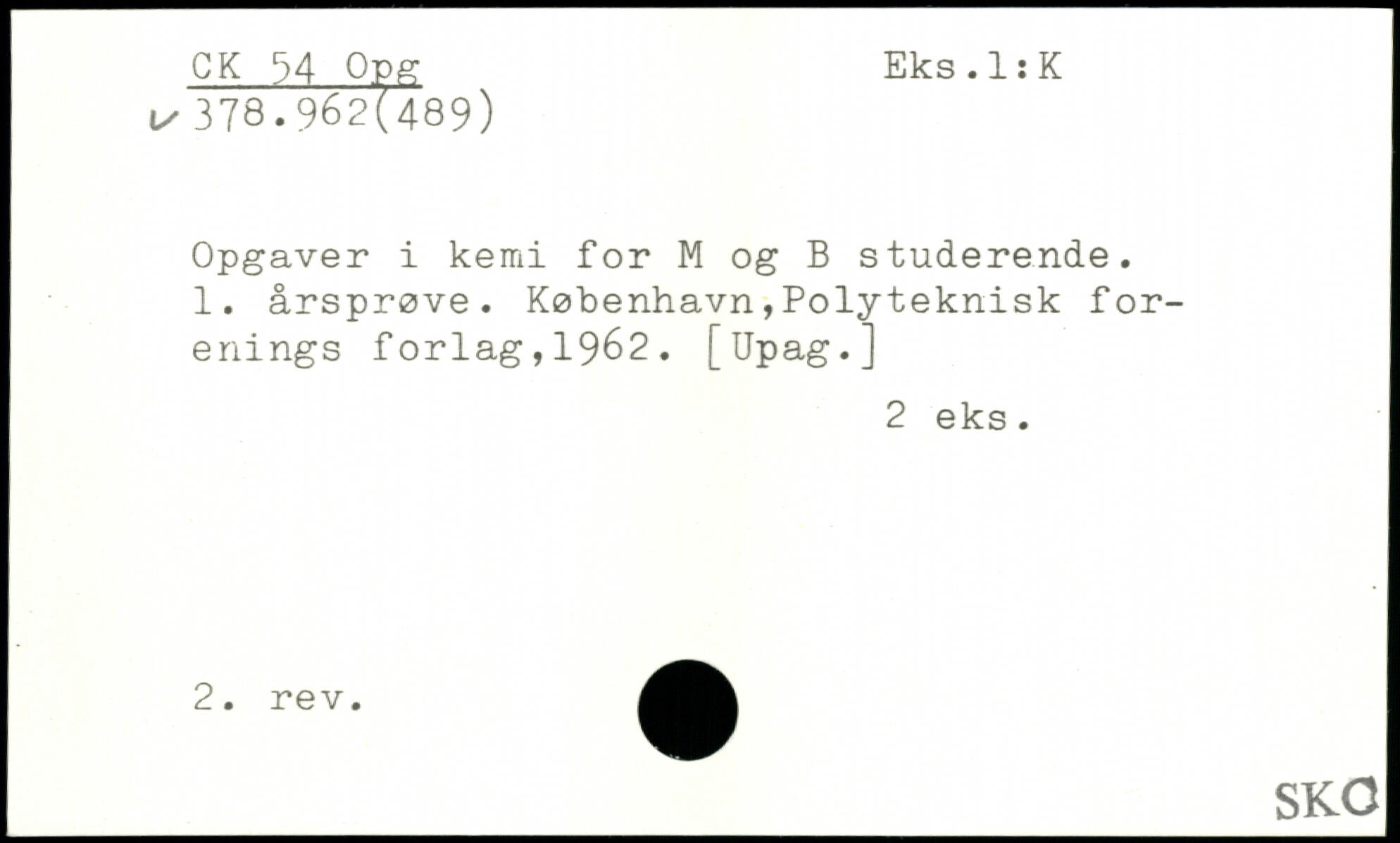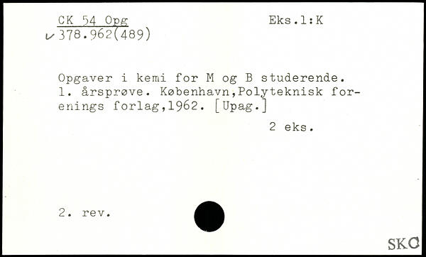 Opgaver i kemi for M og B studerende. 1. årsprøve.