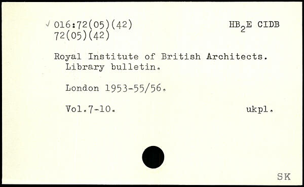 Royal Institute of British Architects. Library bulletin