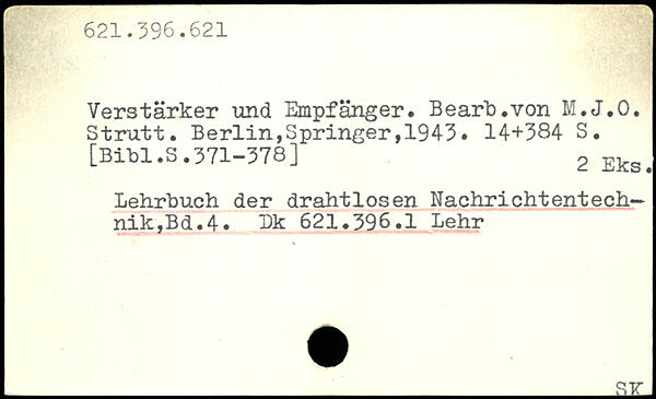 Verstärker und Empfänger. Bearb.von M.J.O. Strutt.