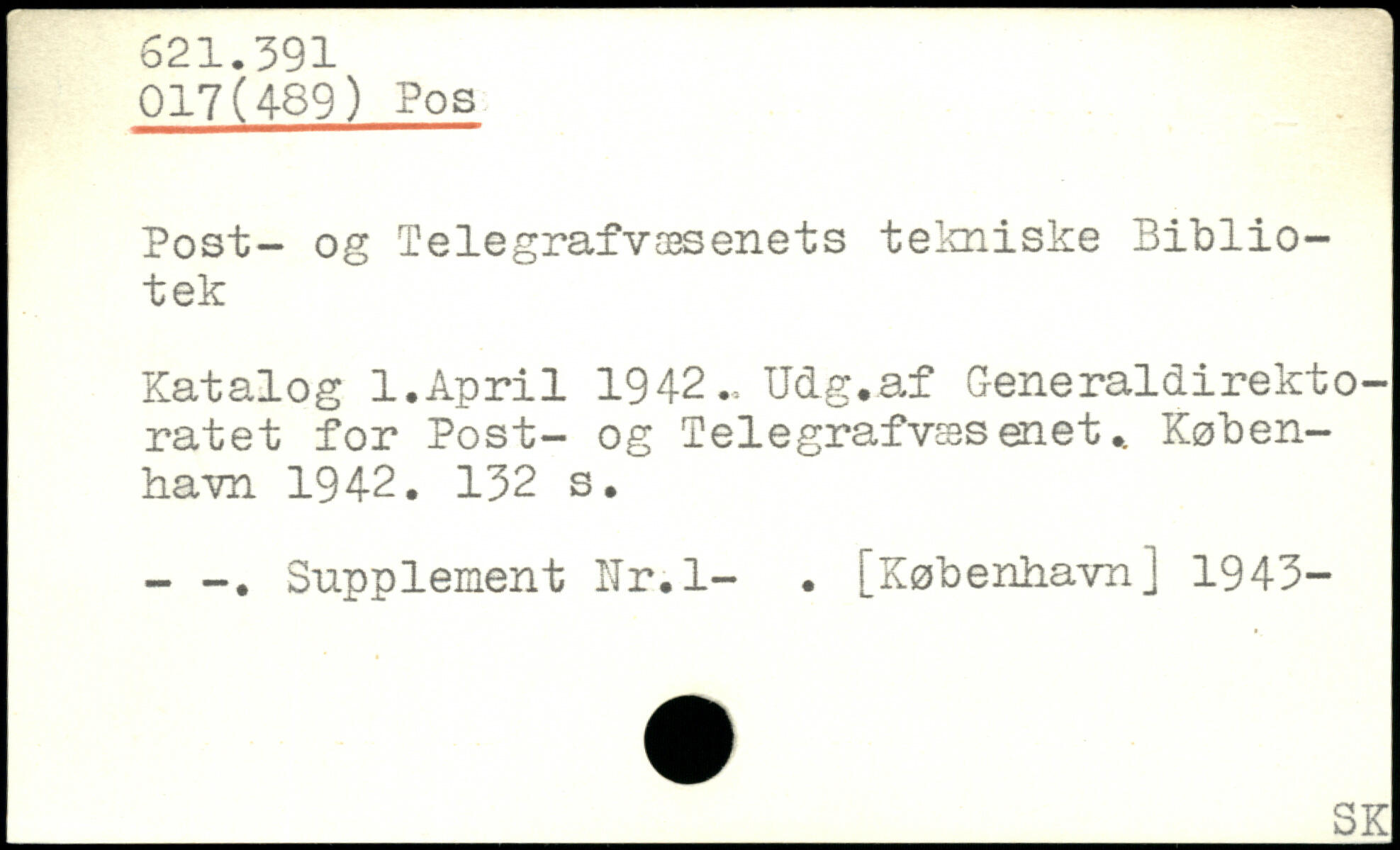 Post- og Telegrafvæsenets tekniske Biblio-tek Katalog 1.April 1942.. Udg.af Generaldirektoratet for Post- og Telegrafvæsenet..
