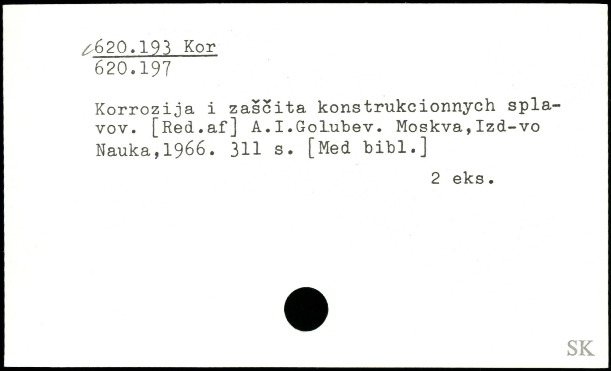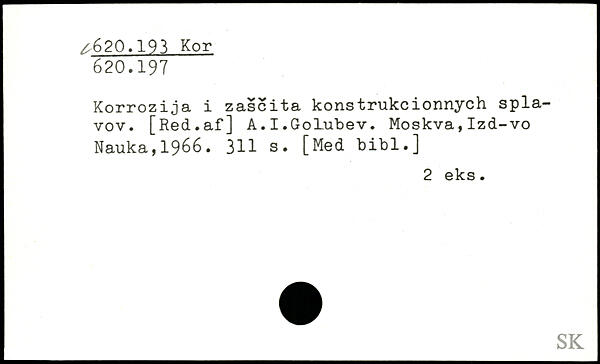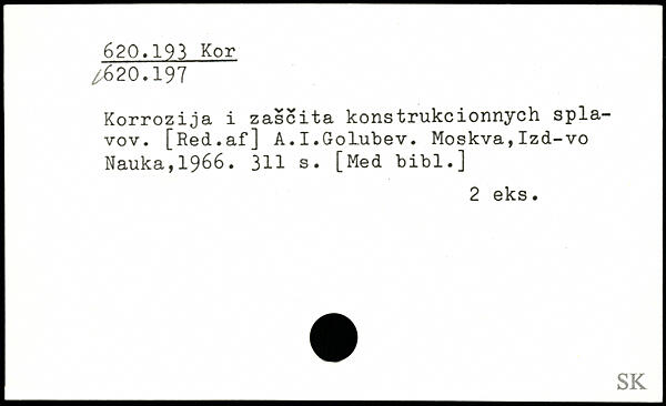 Korrozija i zascita konstrukcionnych spla-vov. [Red.af] A.I.Golubev.