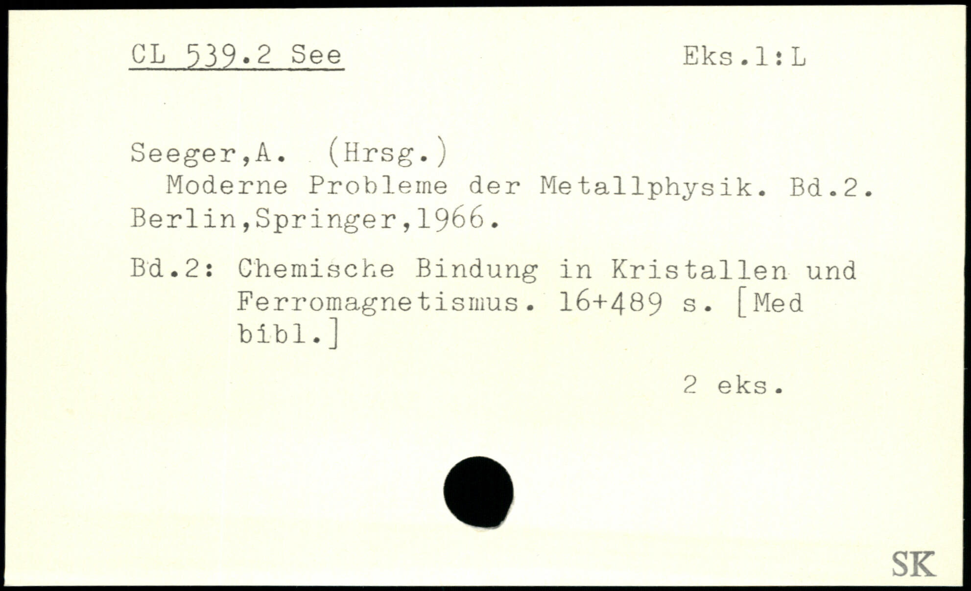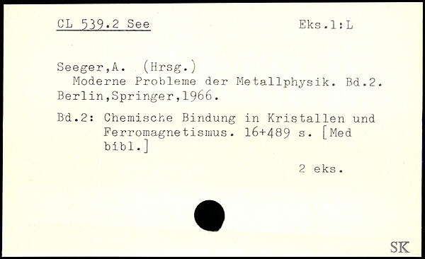 Seeger,A. (Hrsg.; Moderne Probleme der Metallphysik.