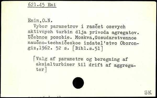 Vybor parametrov i rascet osevych aktivnych turbin dlja privoda agregatov. Ucebnoe posobie. Moskva,Gosudarstvennoe naucno-techniceskoe izdatel'stvo Oboron-giz,1962.