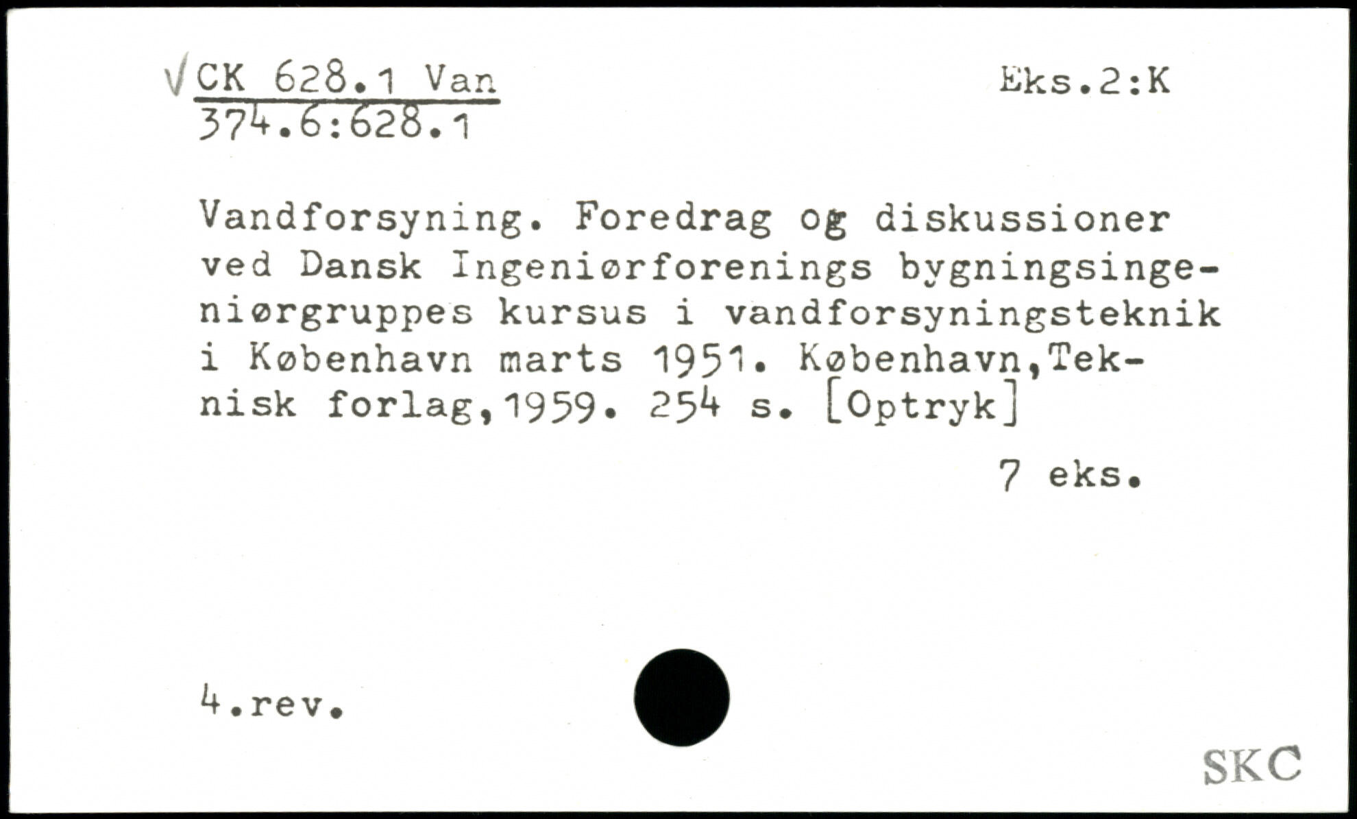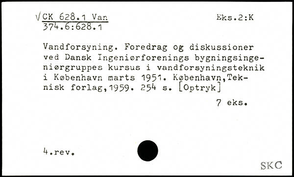 Vandforsyning. Foredrag og diskussioner ved Dansk Ingeniørforenings bygningsingeniørgruppes kursus i vandforsyningsteknik i København marts 195'"'.