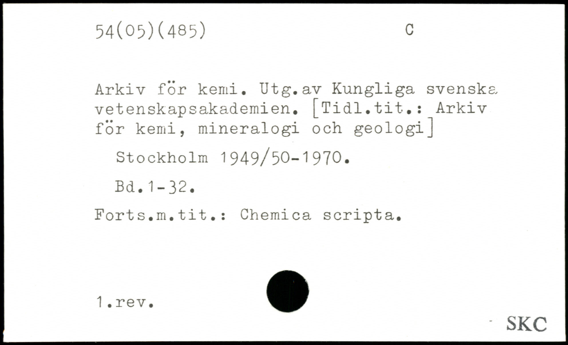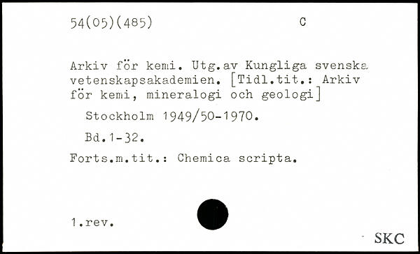 Arkiv för kemi. Utg.av Kungliga svenska vetenskapsakademien. [Tidl.tit.: Arkiv för kemi, mineralogi och geologi]
