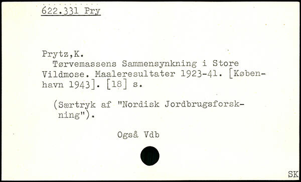 Tørvemassens Sammensynkning i Store Vildmose. Maaleresultater 1923-41.