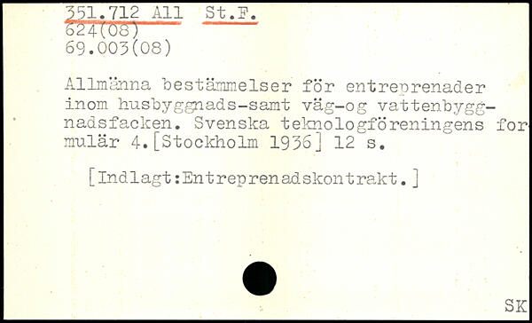 Allmänna bestämmelser för entrerrenader inom husbyggnads-samt väg-og vattenbyggnadsfacken. Svenska teknologföreningens for mulär 4.
