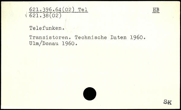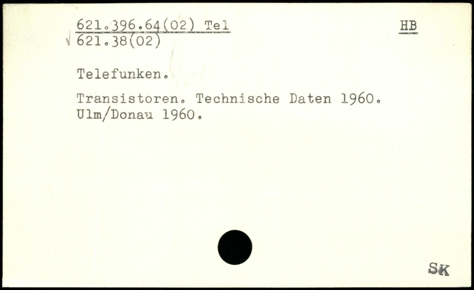 Transistoreno Technische Daten 1960, Ulm/Donau 1960,.